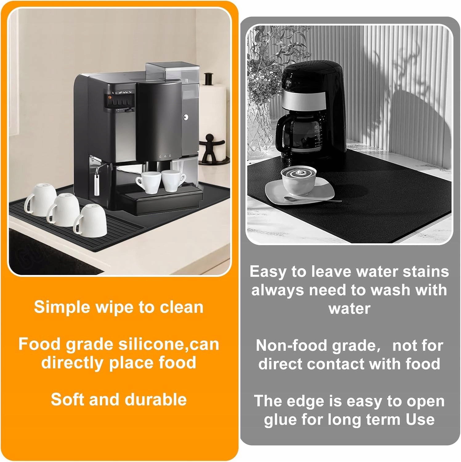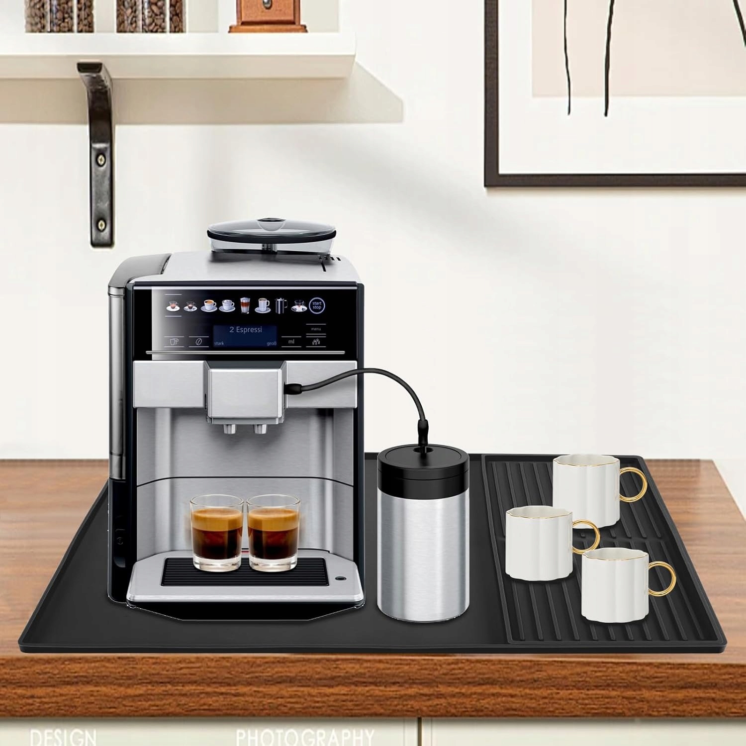 Разделенный кофейный коврик принимает разделенную конструкцию и разделен на 2 области. 23 коврики идеально подходят для хранения кофемашины, а оставшиеся 13 оснащен удобной кофейной чашкой, в которой будет размещать большое количество воды, предотвращая утечки или утечки. Базовый размер составляет 61 х 405 см, а поднос имеет размеры 40 х 19 см, что обеспечивает много места для кофе и чашки. Универсальность этого кофейного коврика можно использовать на кухне и является отличным выбором для любителей кофе. Он также может быть использован в качестве блюда для сушкой посуды, добавляя функциональность поверхности раковины. Незрелый и стихой кухонный коврик был спроектирован с незрелой поверхностью для обеспечения стабильности и безопасности. Его также легко чистить, потому что его можно промыть в стиральной машине. Высококачественный материал Этот кофейный коврик изготовлен из прочного и водонепроницаемого материала, который выдерживает ежедневное использование и защищает полки и раковится от разлива и пятен.