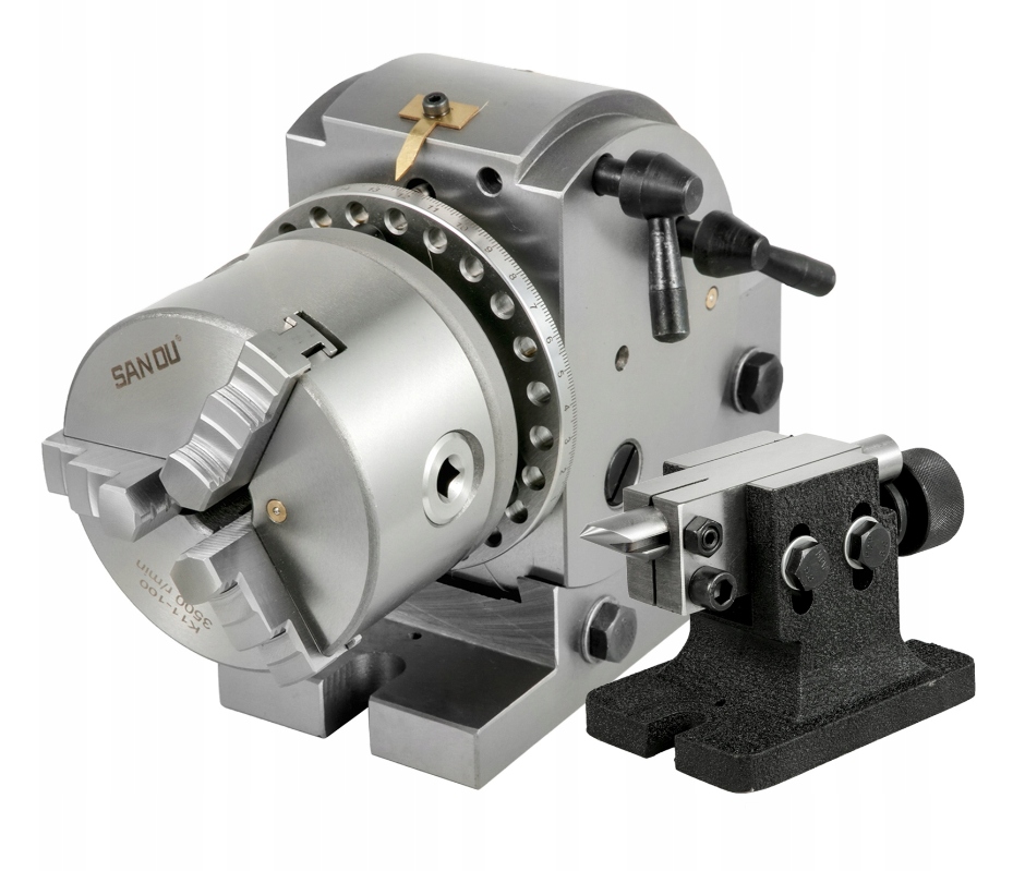 При необходимости различные углы (0-90 градусов) можно регулировать с помощью рукоятки, вертикально-горизонтального фрезерного станка со шпинделем передней бабки для токарного станка. Высота центра: 4 дюйма/100 мм.