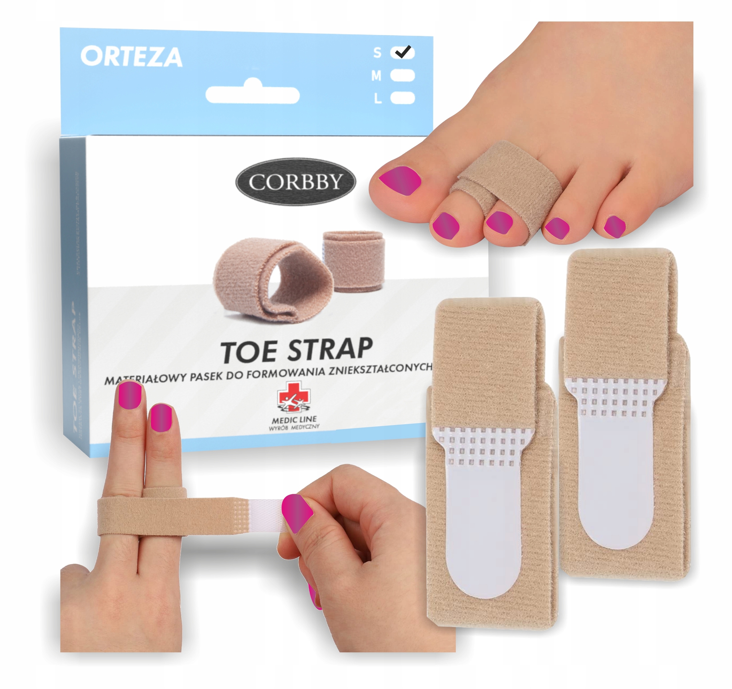 CORBBY TOE STRAP МАТЕРИАЛ РЕМЕНЬ ДЛЯ ФОРМИРОВАНИЯ ДЕФОРМИРОВАННЫХ ПАЛЬЦЕВ, РАЗМЕР S!