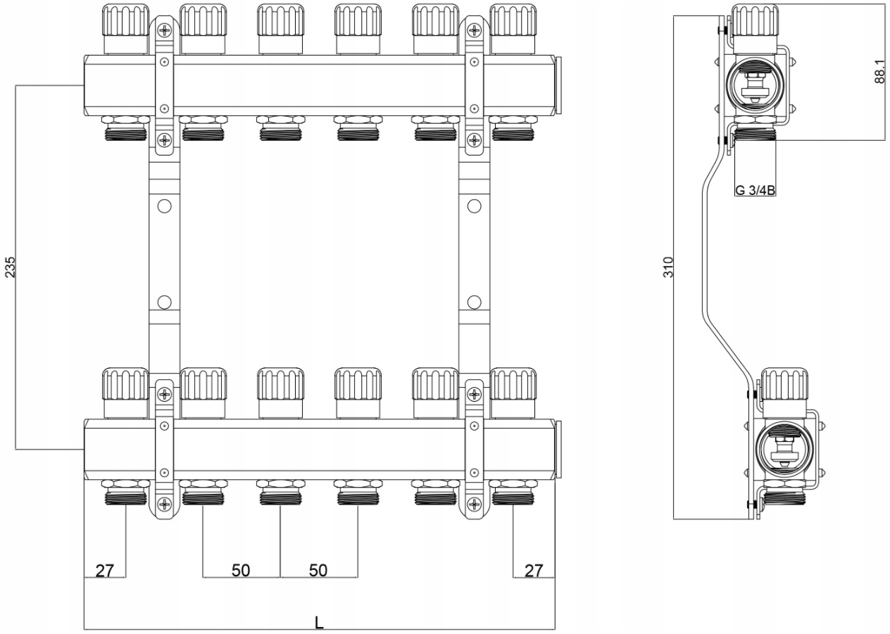 РАЗДЕЛИТЕЛЬ РАДИАТОРА 2 С ЗАПОРНЫМИ КЛАПАНАМИ