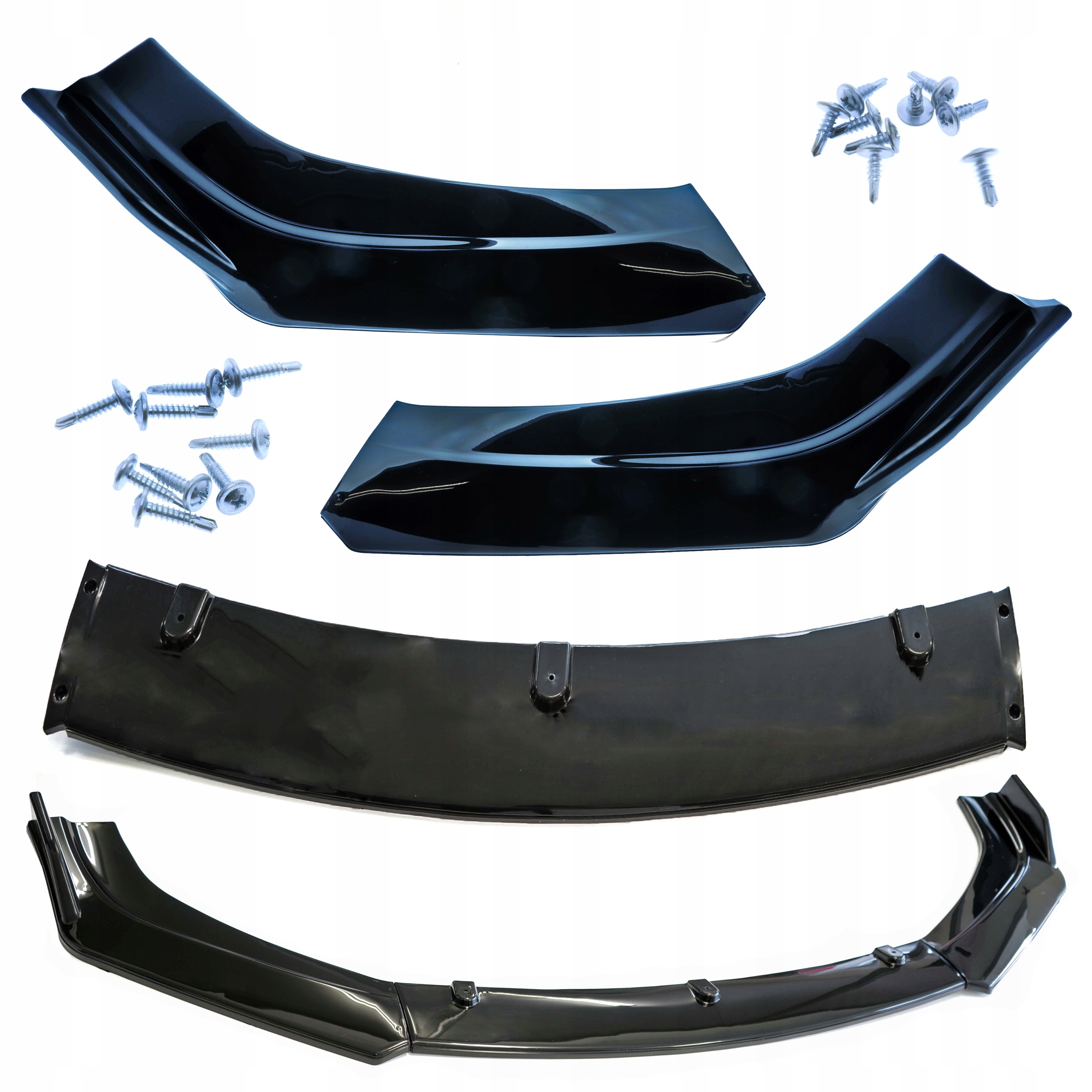 Универсальный удлинитель переднего бампера из трех частей черного цвета (глянец), изготовлен из очень легкого и очень прочного материала ABS, устойчивого к погодным условиям.