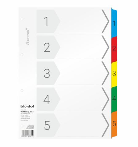 Разделители из ламинированного картона Biurfol А4 - пронумерованы 1-5