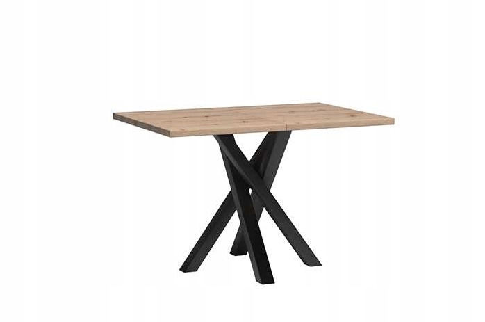 Раздвижной стол с большой столешницей для столовой, гостиной. Ножки изготовлены из металла, покрыты порошковой краской черного цвета. В разложенном виде длина стола составляет 120 см. Используя прилагаемую вставку (40 см), мы можем получить большой предмет мебели для семейных обедов и вечеринок. Стол выдвигается до размера 160 см. Сочетание светлого натурального цвета ремесленного с черными металлическими ножками — это дизайнерский образ обустройство столовой. Стол подойдет как к современному индустриальному интерьеру, так и к классическому интерьеру в стиле лофт.