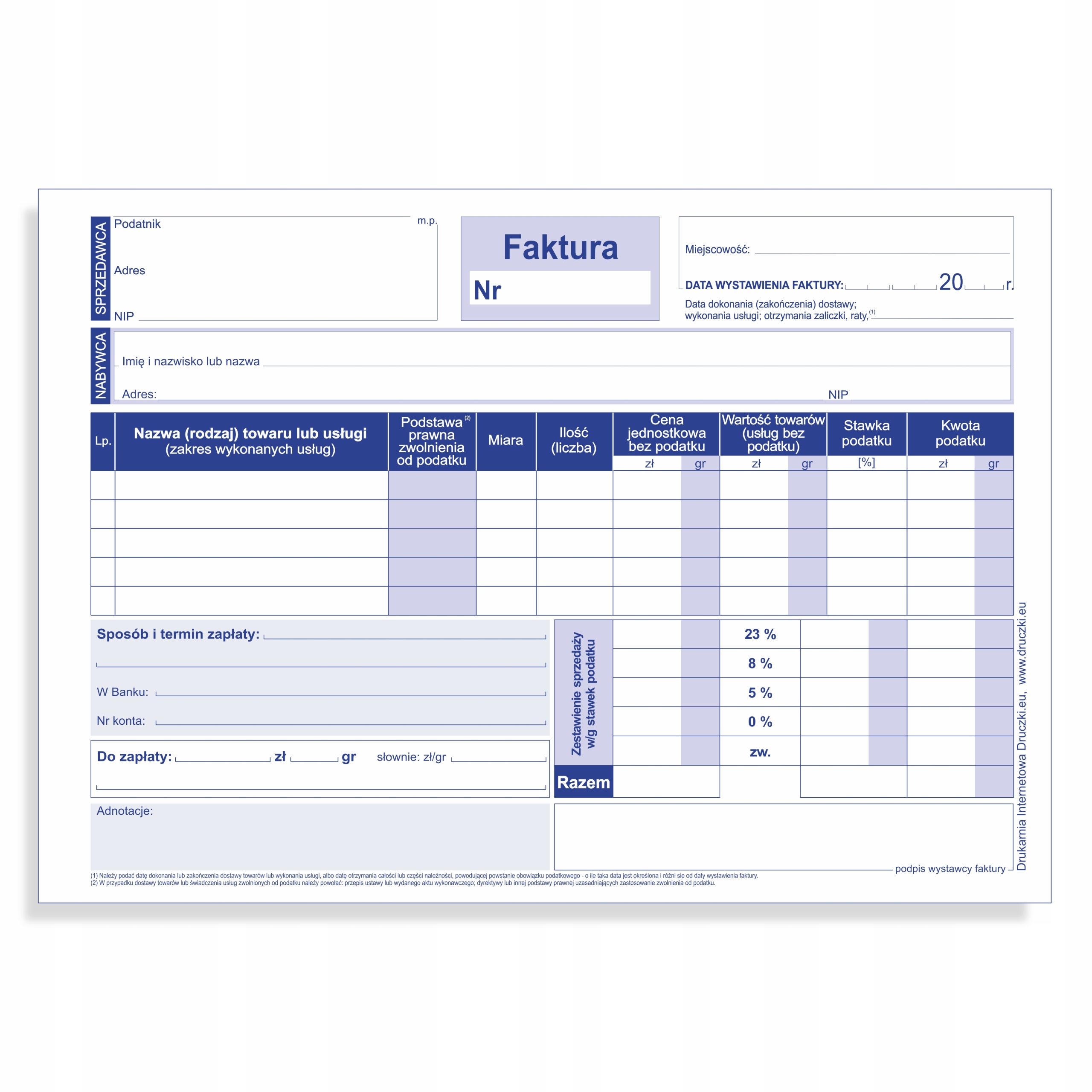 Оплачивая «Печать НДС -счета из сети A5 Self -Pursuing / Multicidation 80 карт», вы можете быть уверены, что данное изделие из каталога «Печать» будет доставлено из Польши и проверено на целостность. В цене товара, указанной на сайте, учтена доставка из Польши. Внимание!!! Товары для Евросоюза, согласно законодательству стран Евросоюза, могут отличаться упаковкой или наполнением.