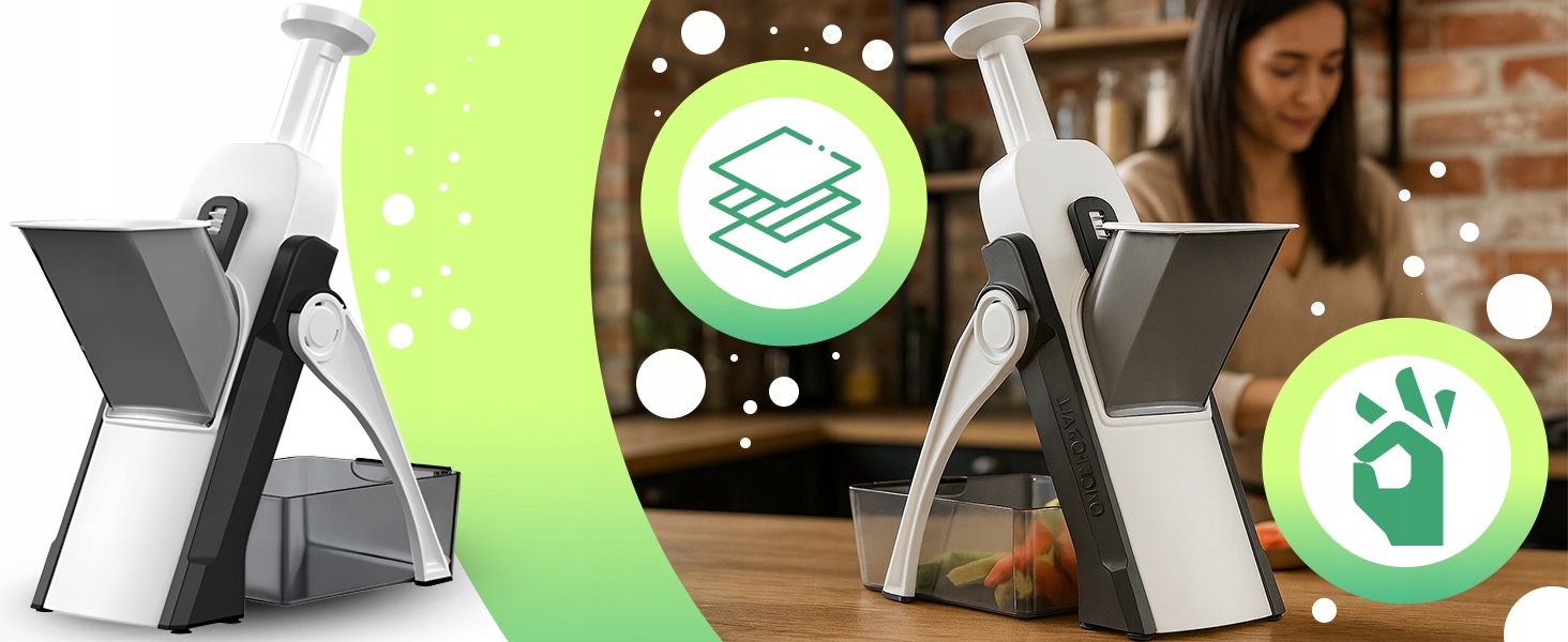 ⭐ РЕГУЛИРУЕМАЯ ТОЛЩИНА 1–8 ММ – точная настройка под тип блюда.