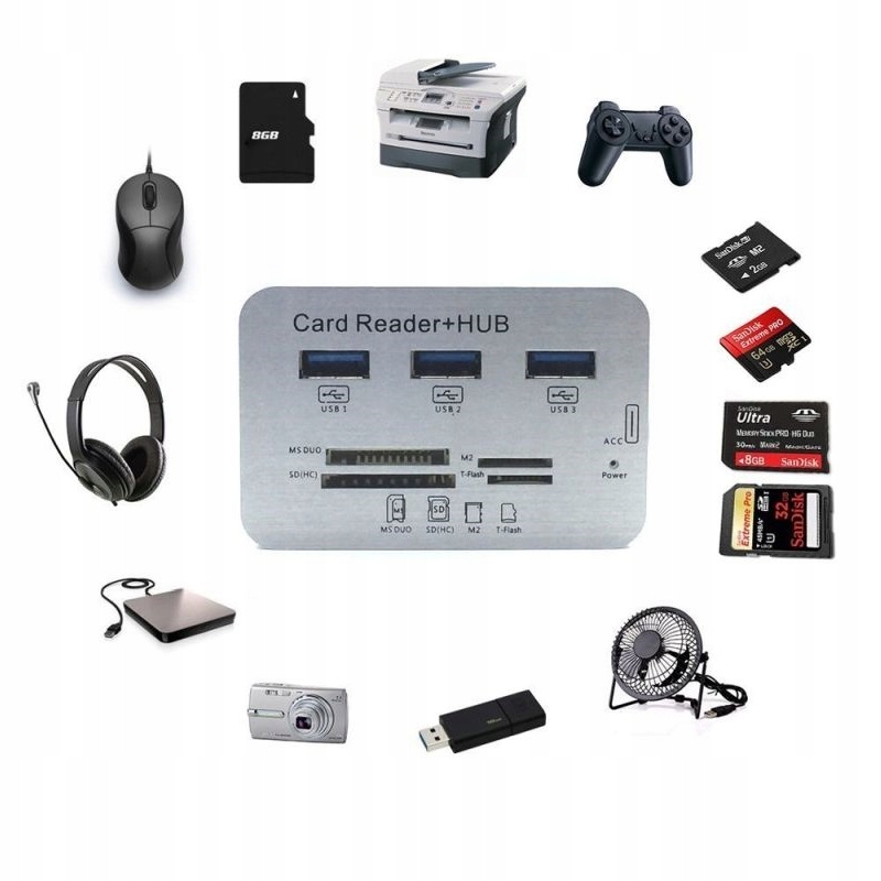 Rozdzielacz HUB Czytnik kart 3x USB 3.0 SD MicroSD