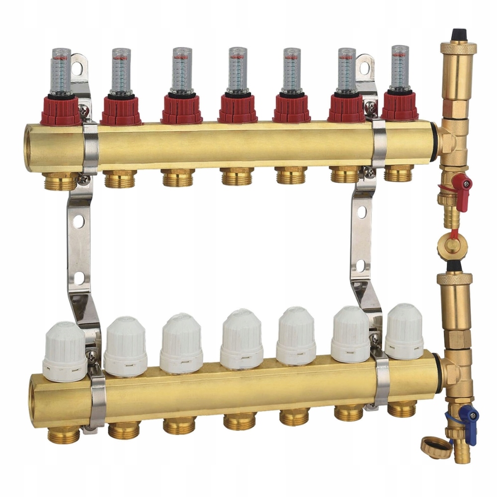 ROZDZIELACZ MOSIĘŻNY DO PODŁOGÓWKI 7 OBWODÓW SEKCJI ROTAMETRY + TERMOSTATY