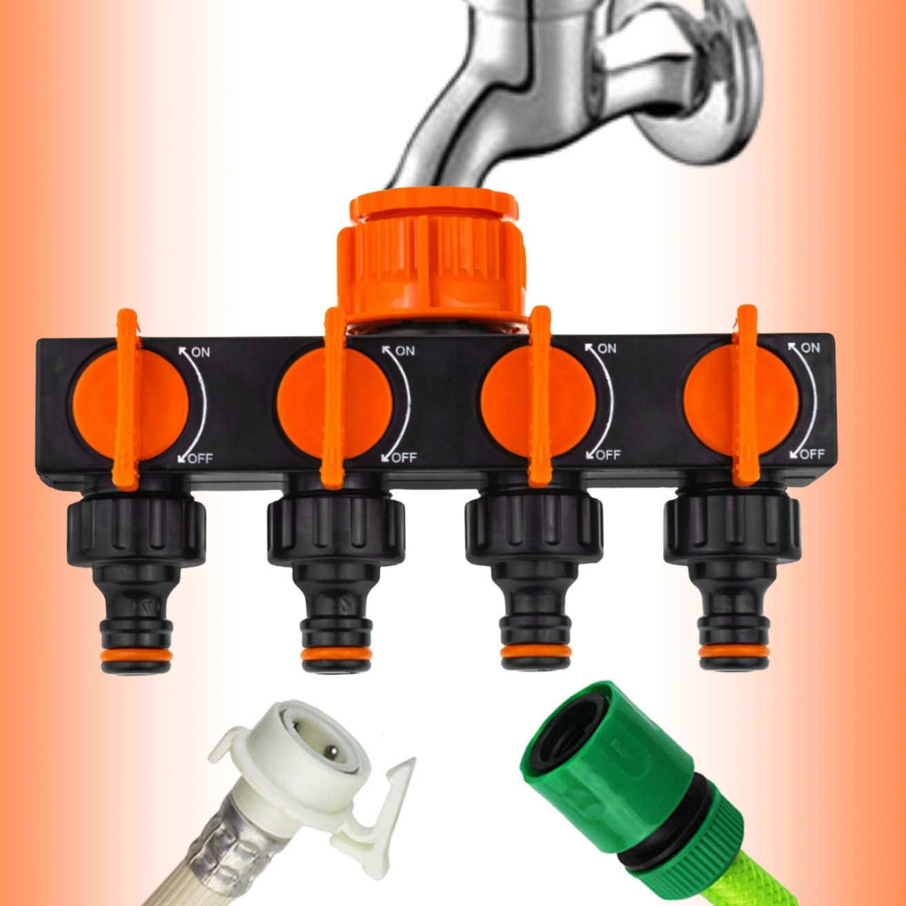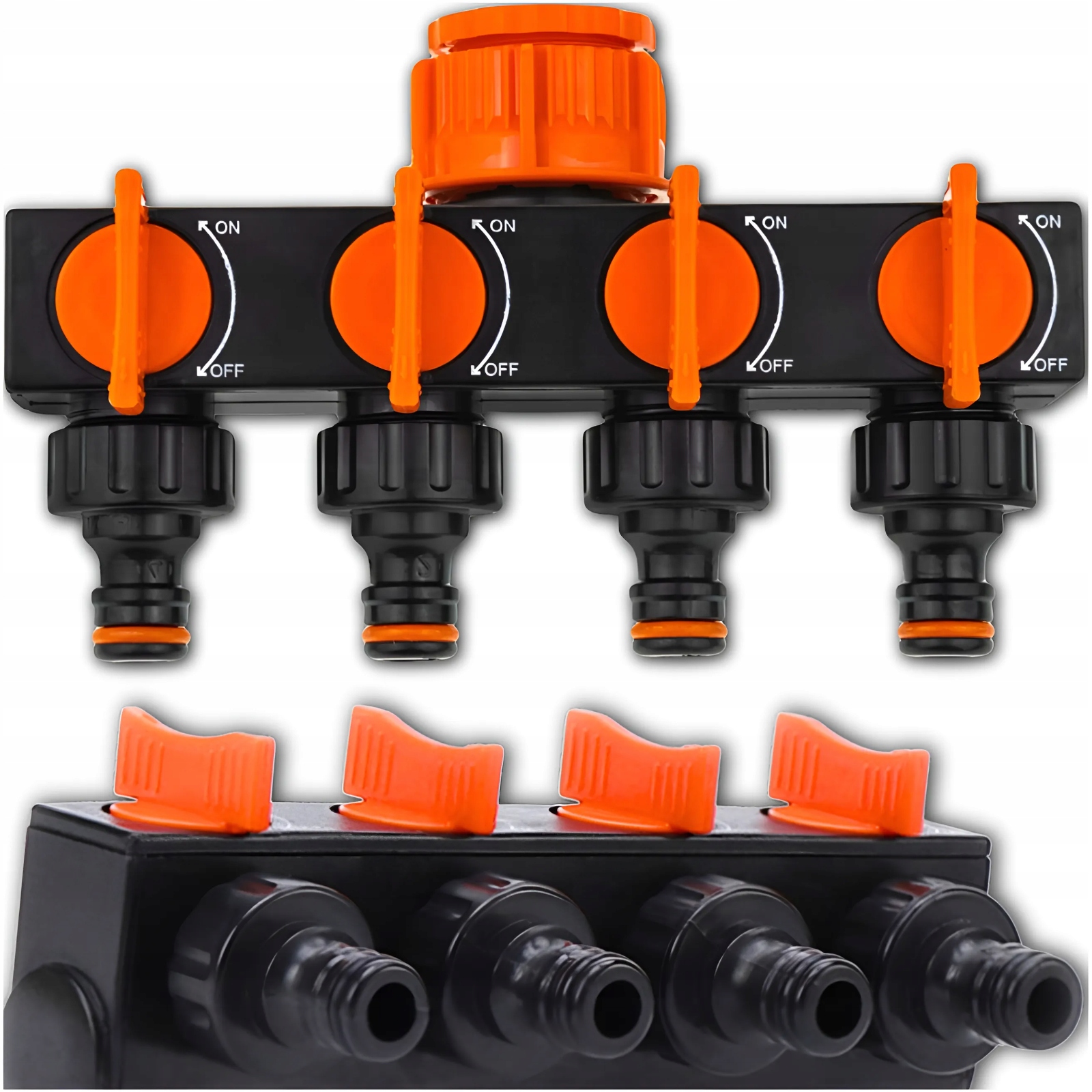 ROZDZIELACZ OGRODOWY DO WODY 4-DROŻNY Z ZAWORAMI NA WĄŻ SZYBKOZŁĄCZKA 3/4"