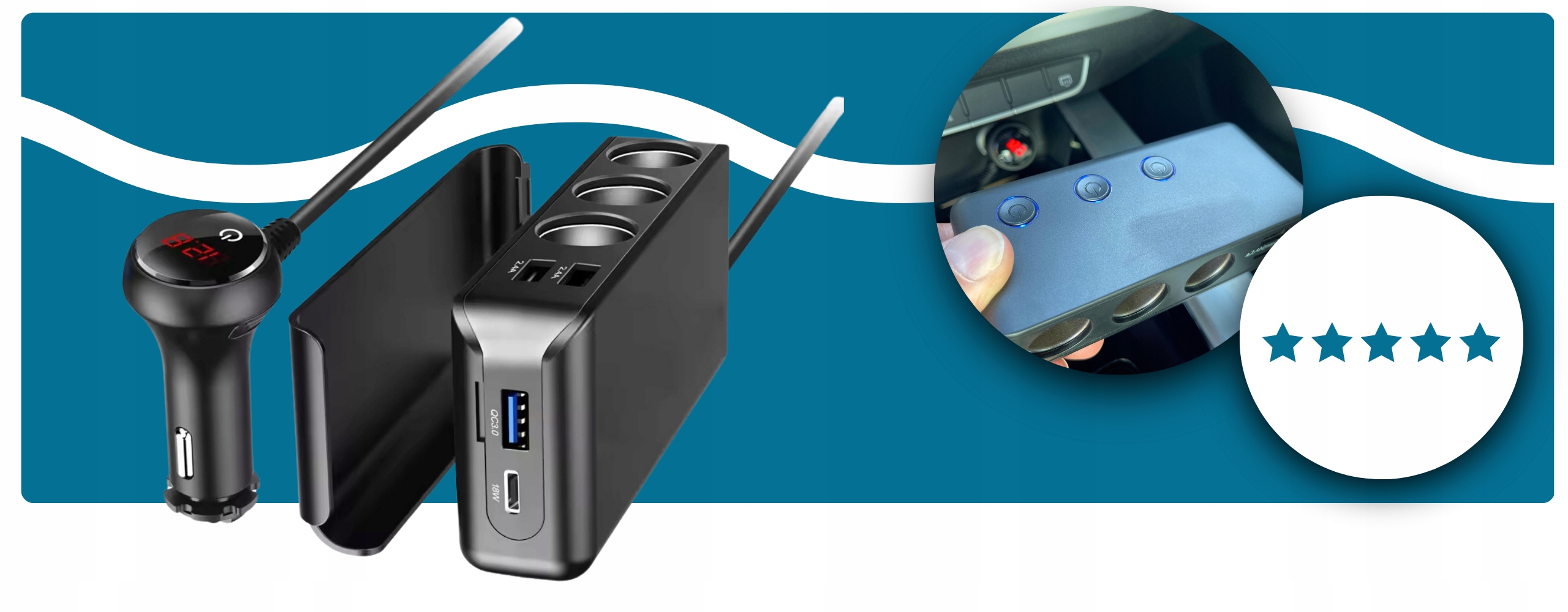 ROZDZIELACZ ROZGAŁĘŹNIK GNIAZDA ZAPALNICZKI 12-24V 3xUSB UBS-C PD ŁADOWARKA