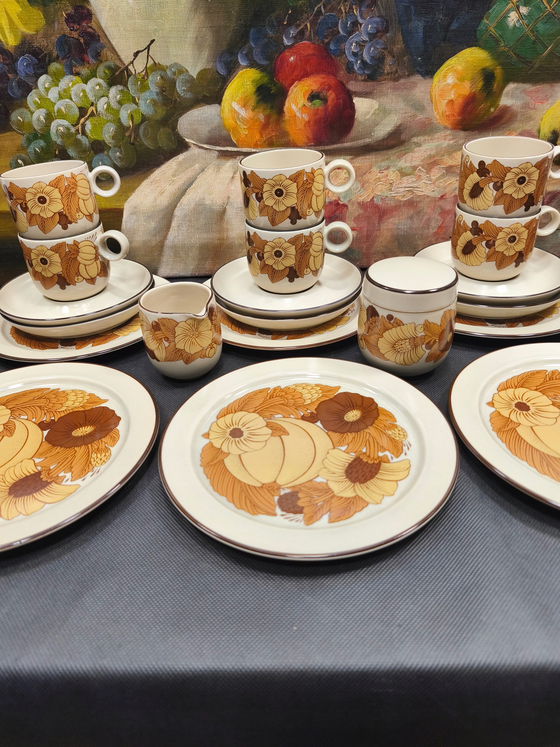 Интересный и декоративный кофе для 6 человек, керамика из фарфорового лейбла Rosenthal. Баришская украшение. Очень хорошее состояние. Практическая способность кофе или чая. 6 стаканов с высотой 7 см и диаметром инфузии 7,3 см, 6 15 см стойки и 6 десертных пластин диаметром диаметром 20 см в 20 см плюс молоко и сахарной миской с крышкой.