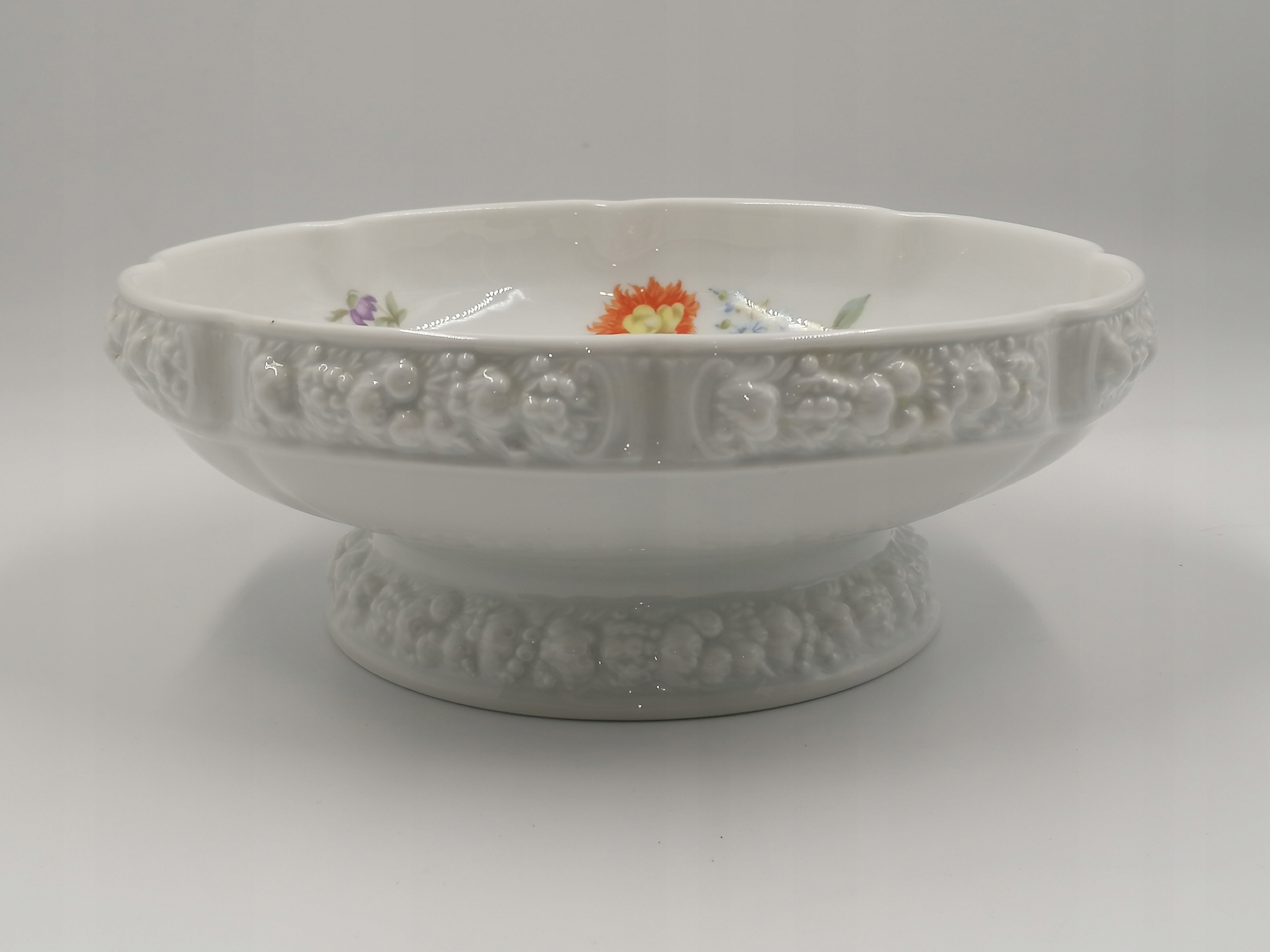 Продаю прекрасную фруктовую машину Rosenthal из серии Мария. Изготовлен из нежного белого фарфора, украшен цветочным узором из коллекции "Sommerstrauss" (летний букет), характерным для серии "Мария" рельефом - мотивом розы по краю.