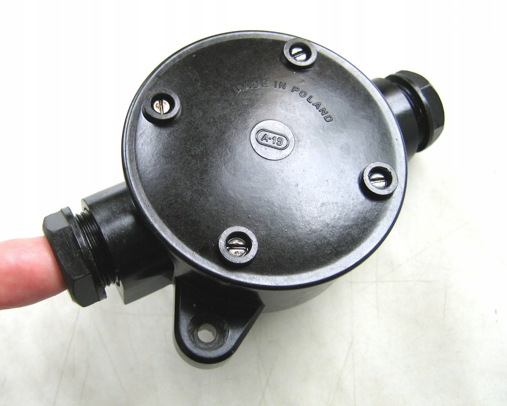 ROZETA - ROZGAŁĘŹNIK puszka HERMETYCZNA Czarny BAKELIT Dwa Wyjścia _ "2"