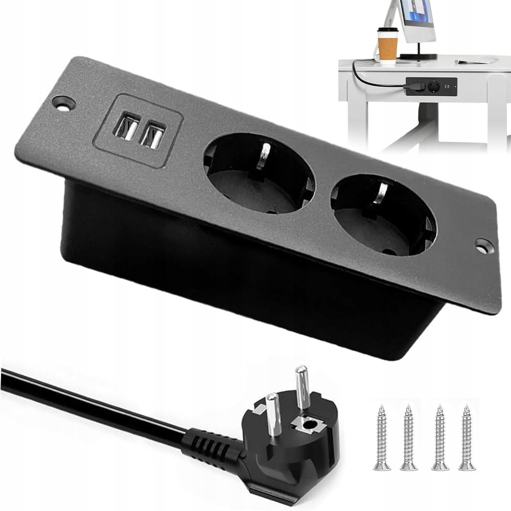 РОЗЕТКА, СКРЫТАЯ В СТОЛЕШНИЦУ С 2 РОЗЕТКАМИ, 2 ПОРТА USB A С КАБЕЛЕМ ДЛИНОЙ 1,5 М