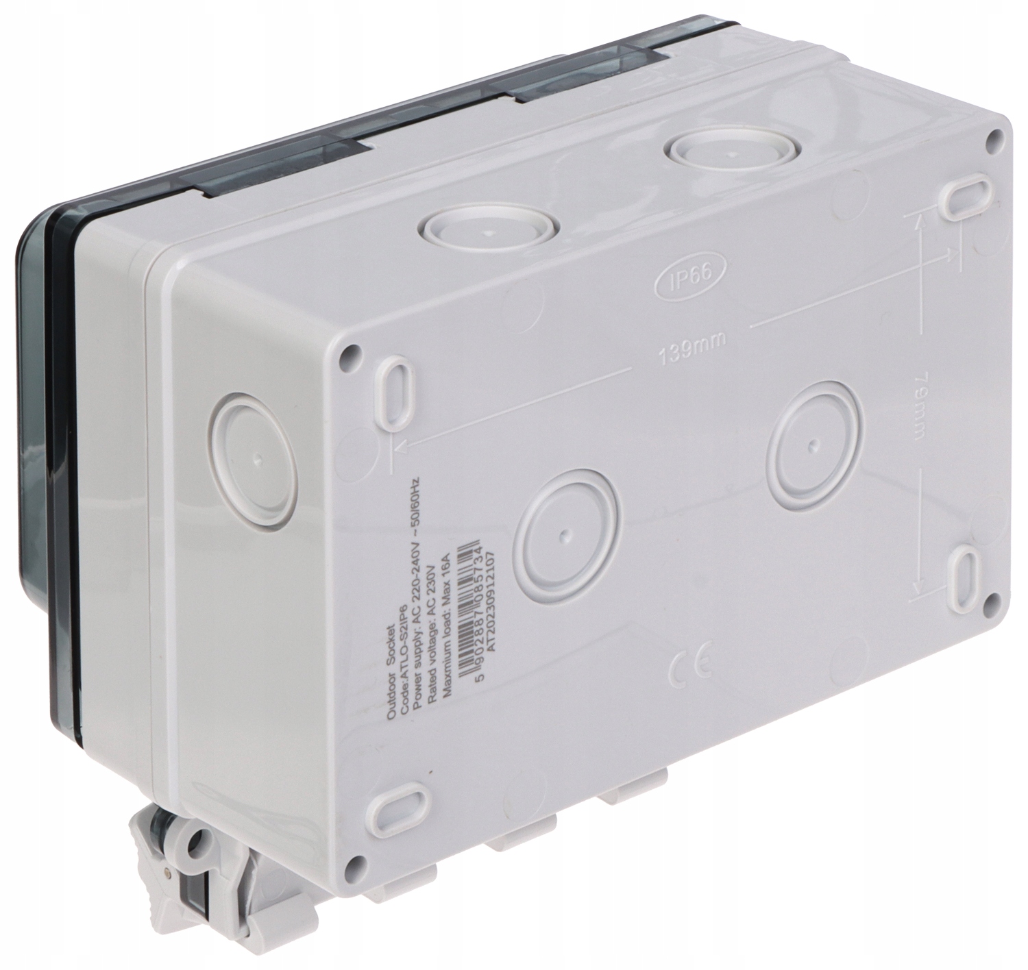 РОЗЕТКА 230 В ДВОЙНАЯ НАКЛАДНАЯ НАРУЖНАЯ МОНТАЖНАЯ ГЕРМЕТИЧНАЯ IP66 ATLO-S2IP6