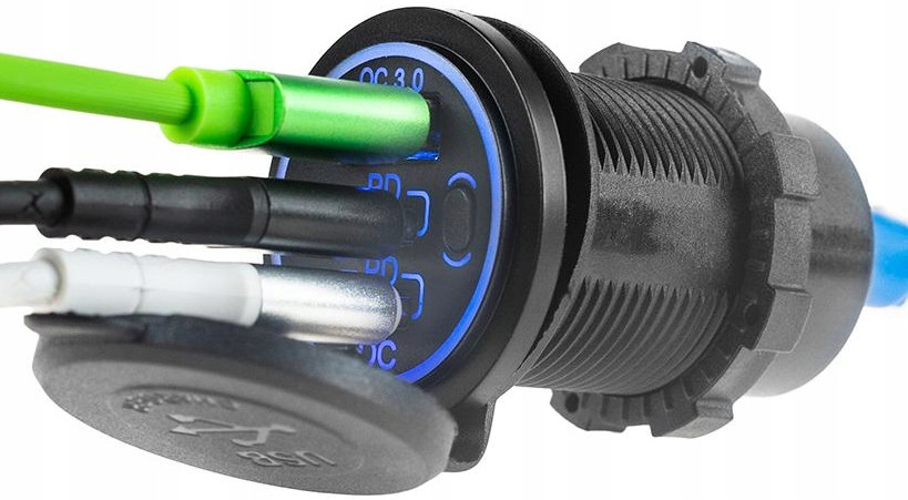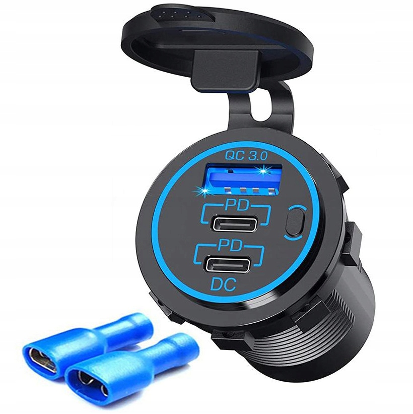 Розетка для мотоцикла 12V 2x USB-C Type-C PD +USB QC3.0 54W IP54 LED