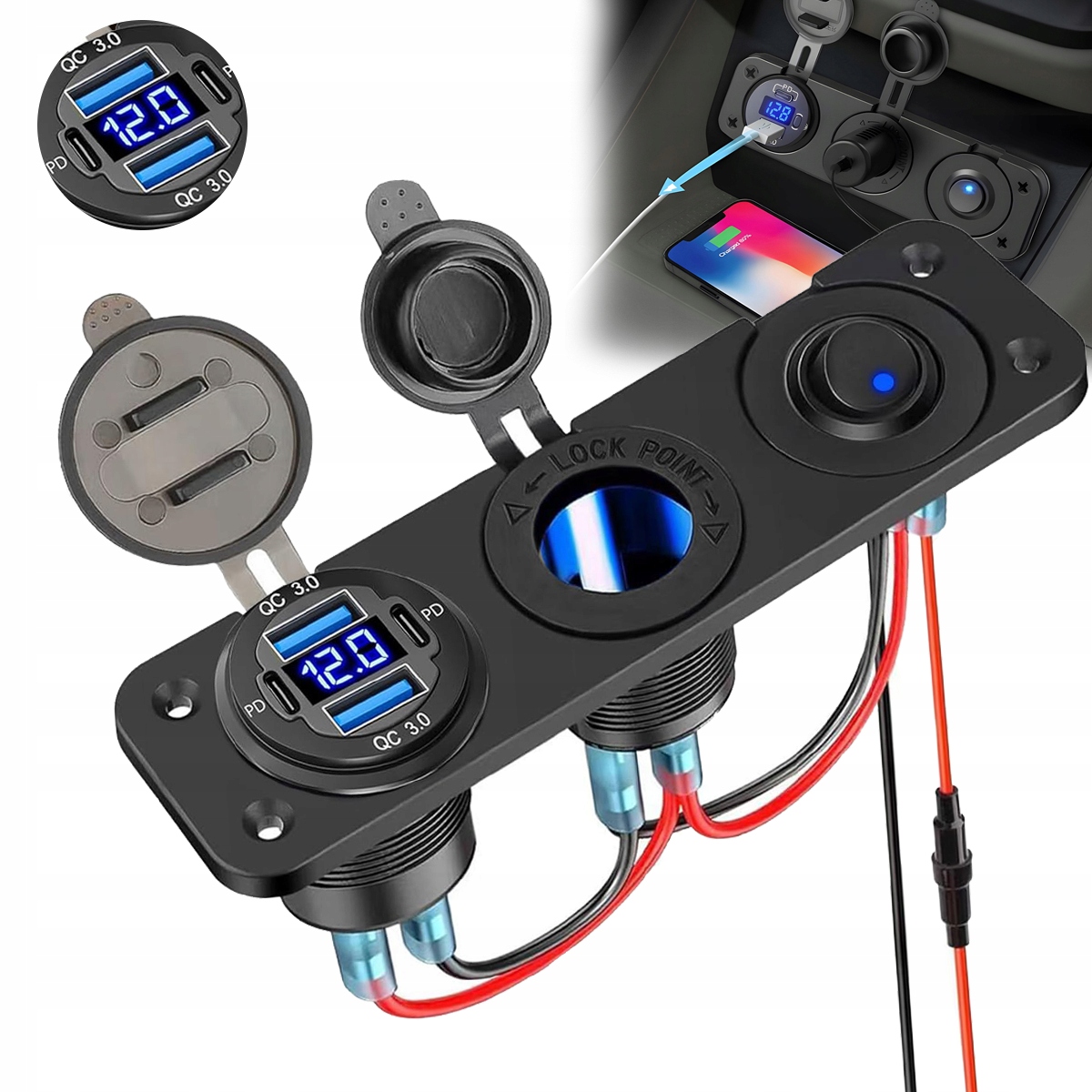 РОЗЕТКА ДЛЯ ЗАРЯДКИ РОЗПОДІЛЬНИК ПРИКУРЮВАЧА 12В Автомобільна ПАНЕЛЬ USB-C 22,5W