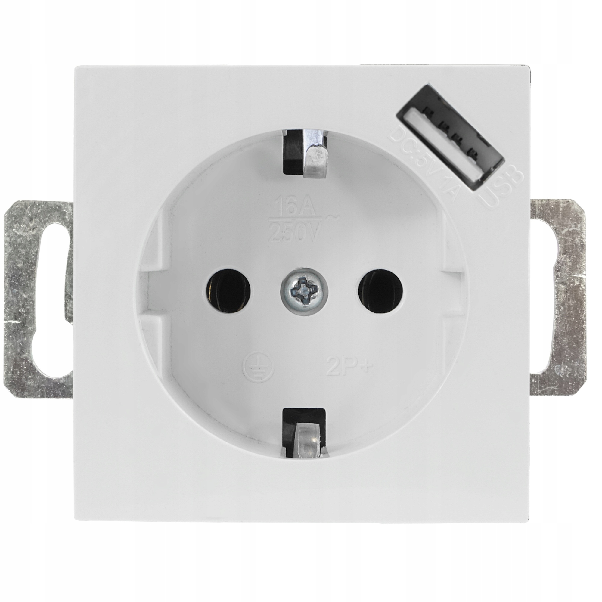 РОЗЕТКА ОДИНАРНАЯ С ЗАЗЕМЛЕНИЕМ, ТИПА SCHUKO, С БЕЛОЙ РОЗЕТКОЙ USB, ДЛЯ СКРЫТОГО МОНТАЖА, ДЛЯ РАМКИ.