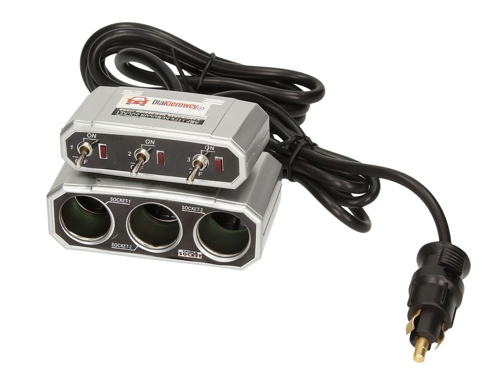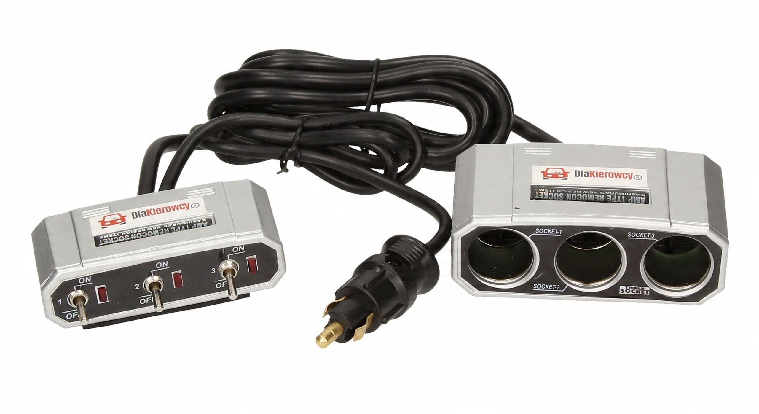 Единственный на польском рынке разветвитель прикуривателя 12 В на 24 В с переключателями для тонкой и маленькой вилки прикуривателя.