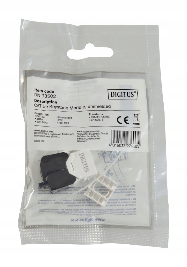 - Неэкранированный модуль Keystone RJ45 (8P8C) категории 5e от Digitus Professional;