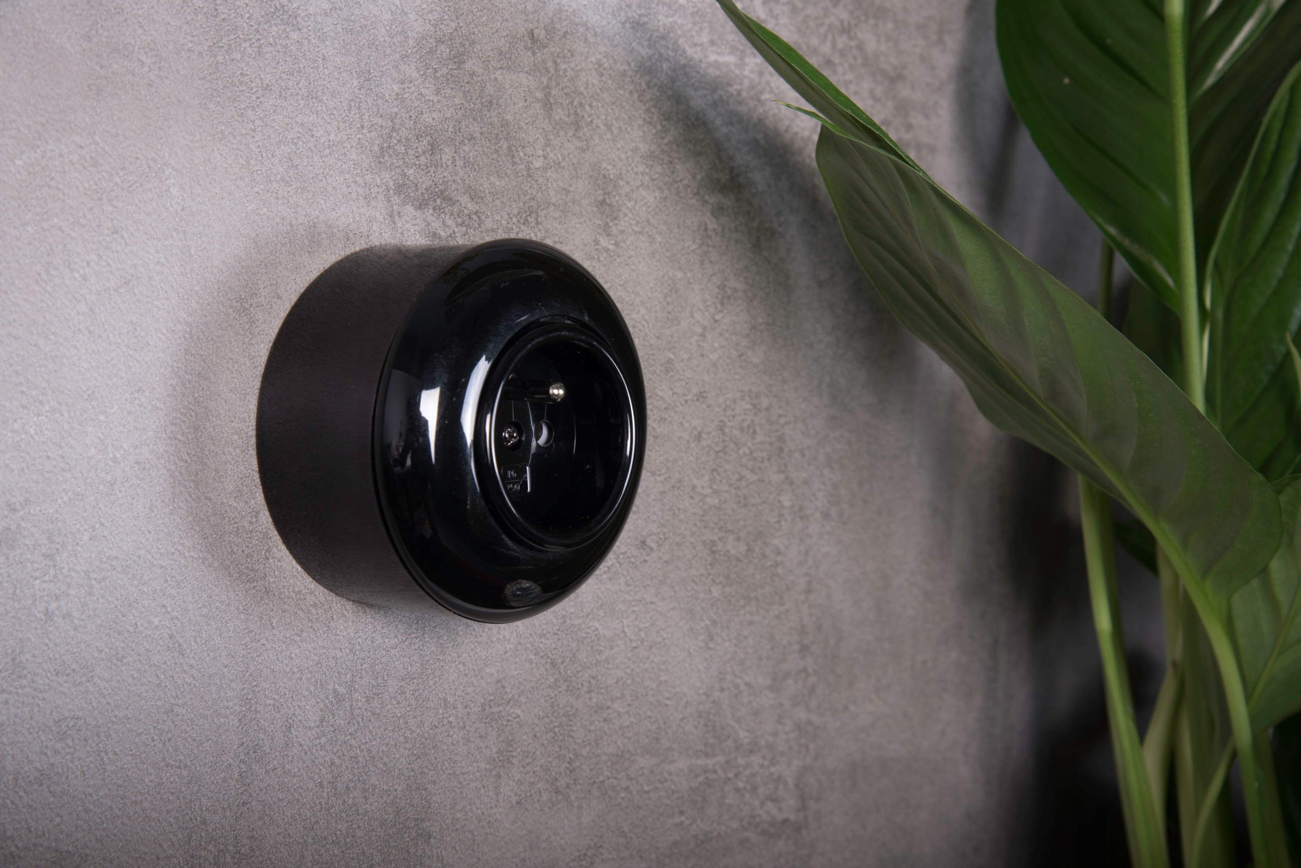 РОЗЕТКА ЛОФТ 230 В З ШТИРКОВОЮ, ЧОРНА ПОВЕРХНЕВА, ОДИНАРНА JLM