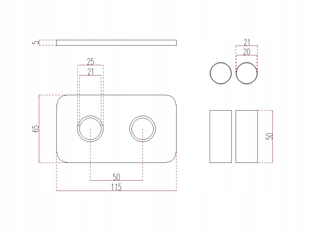 - Расстояние между осями отверстий 50 мм
