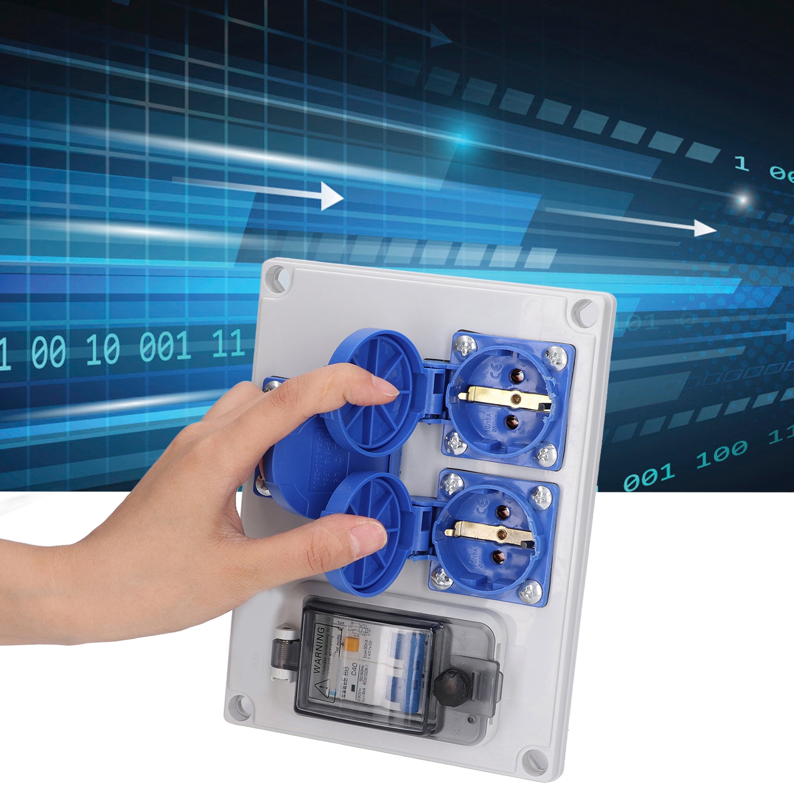 1. Надежная работа: оснащен автоматическим выключателем 230 В 40 А 1P+N, который обеспечит безопасность электроснабжения вне помещения. 2. Двойная розетка: 3-позиционная немецкая розетка обеспечивает большую гибкость и удобство подачи электроэнергии. 3. Водонепроницаемая крышка: самозакрывающаяся шарнирная крышка эффективно предотвращает попадание воды и пыли в контейнер. 4. Широкое применение: идеально подходит как для внутреннего, так и для наружного использования, может использоваться в саду, гараже, ванной комнате и так далее. 5. Твердый корпус из АБС-пластика. Твердый корпус из высококачественного АБС-пластика обладает превосходной прочностью и обеспечивает длительное использование.