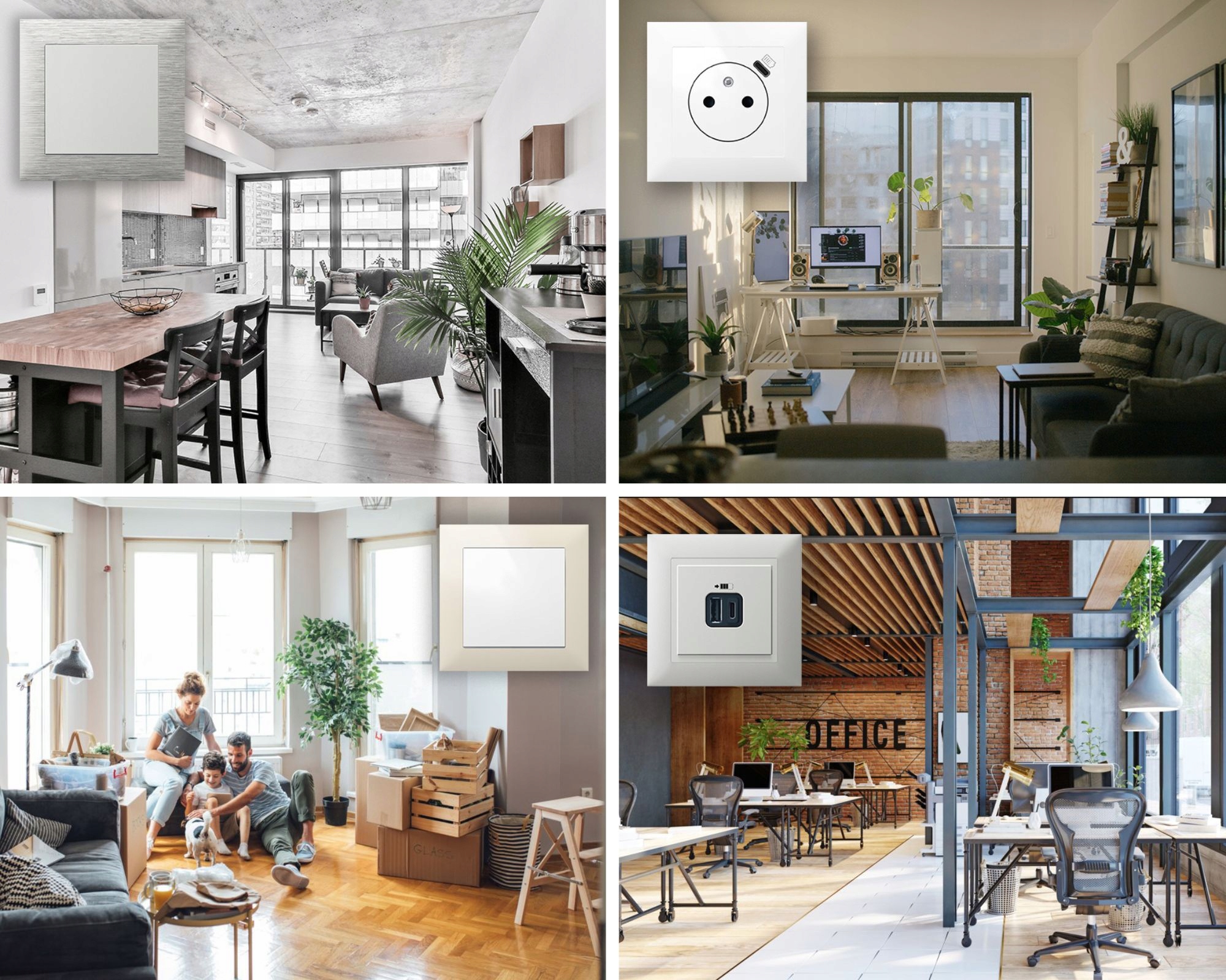 Розетки и разъемы SUNO отличаются тщательно продуманным дизайном, гармонирующим с современным стилем. Их квадратная форма сочетается с нежной, слегка изогнутой поверхностью. Стоит подчеркнуть, что есть возможность настроить их под свои предпочтения. Производитель предоставляет три основных варианта цвета отделки разъемов: белый, черный и алюминий. Покупатель также может выбрать один из пяти оттенков рамок. Причем как коннекторы, так и рамки доступны в двух вариантах: матовом и глянцевом.