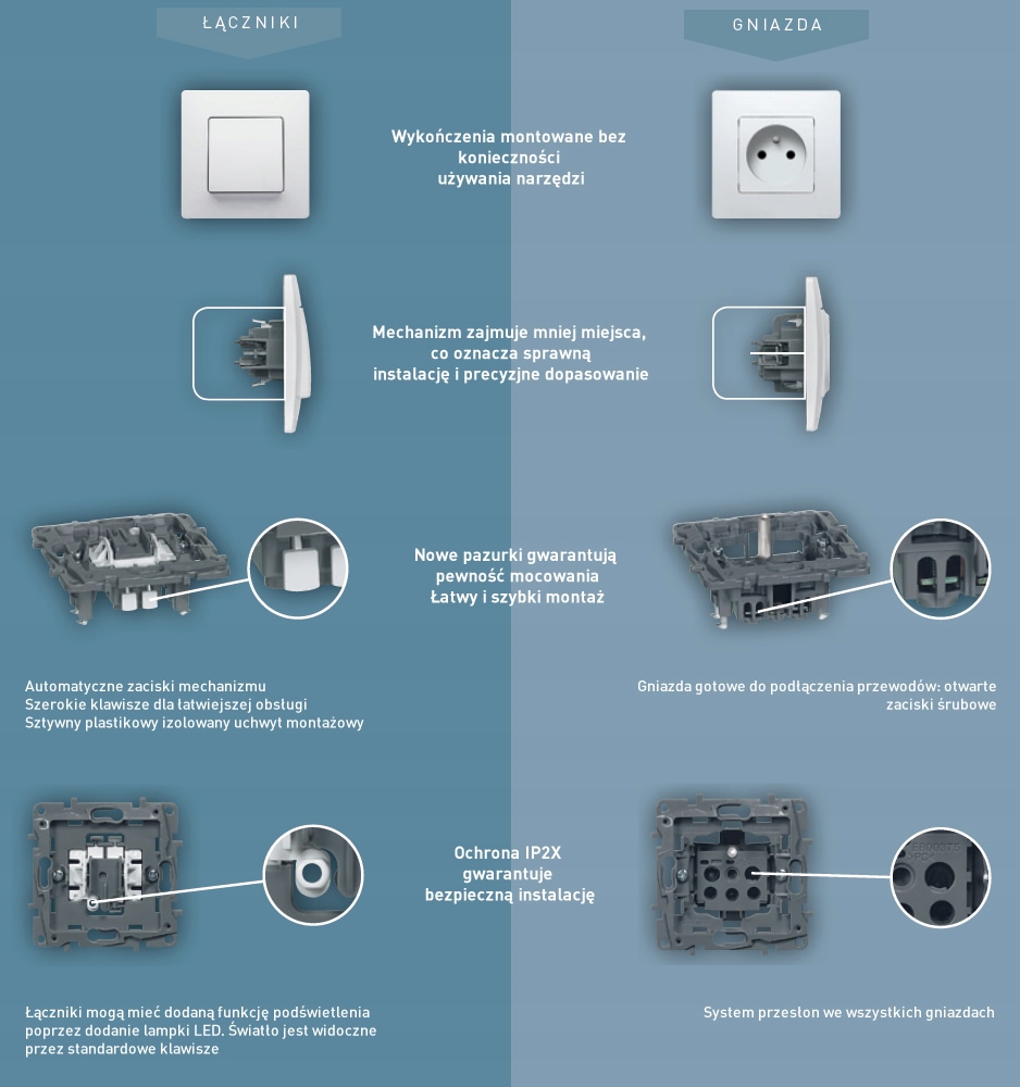 Предложение также включает механизмы разъемов, изготовленные с использованием радиотехнологии ZigBee, что позволяет расширить существующую установку функциями домашней автоматизации без необходимости ломать стены.