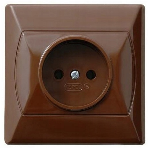 Розетка Ospel Akcent одинарна без заземлення. коричневий
