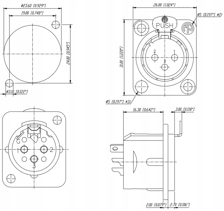 Розетка панельна NEUTRIK NC3FD-L-BAG-1 XLR 3PIN