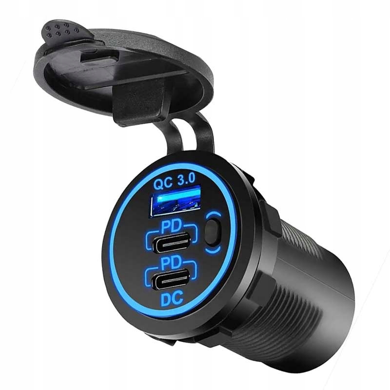 Тройная USB-розетка для яхты, с выключателем. Обеспечивает быструю зарядку мобильных устройств. Синяя светодиодная подсветка. Простая установка вместо гнезда прикуривателя или в качестве новой розетки. В комплект входит жгут проводов с предохранителем.