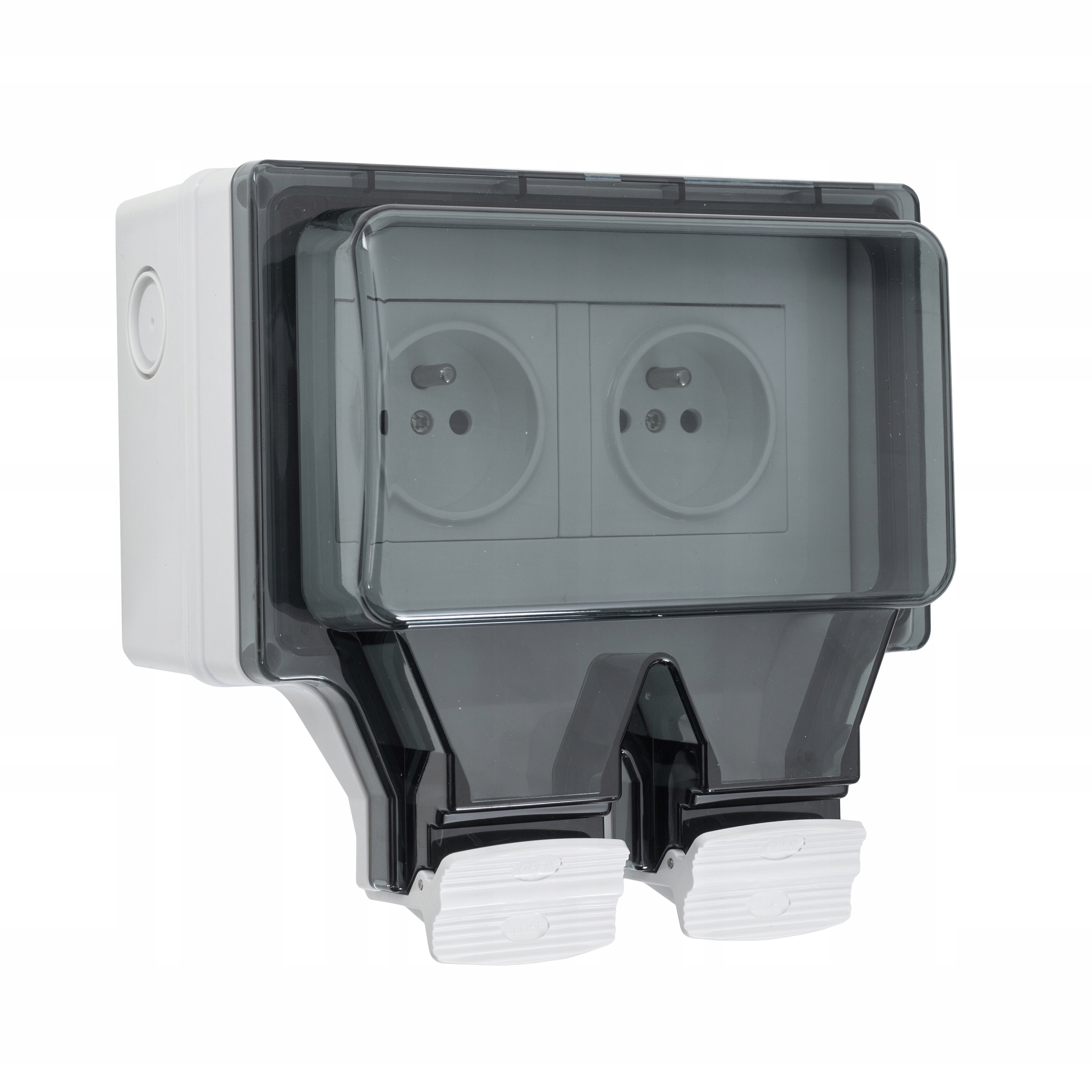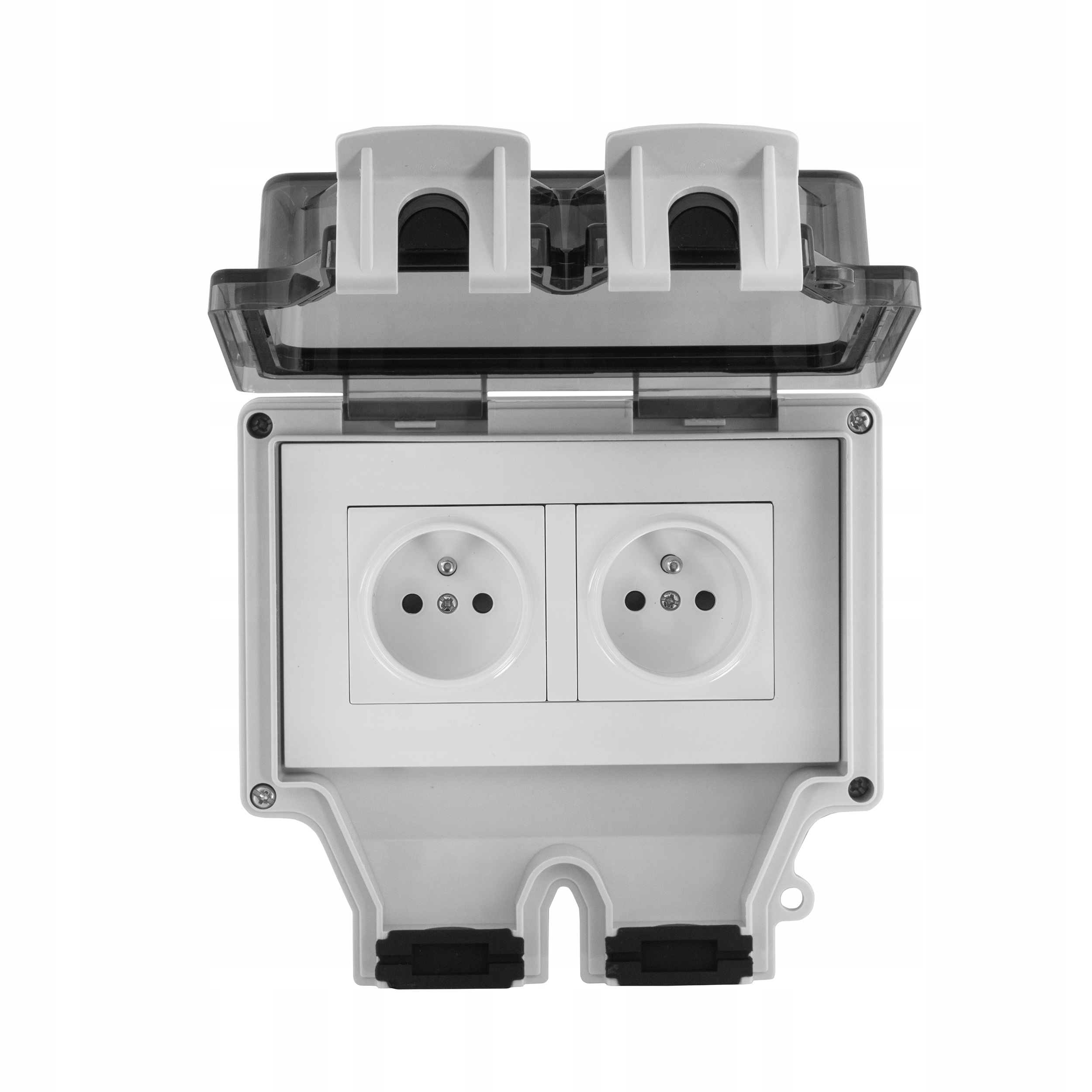РОЗЕТКА 230 В ДВОЙНАЯ НАКЛАДНАЯ НАРУЖНАЯ МОНТАЖНАЯ ГЕРМЕТИЧНАЯ IP66 ATLO-S2IP6