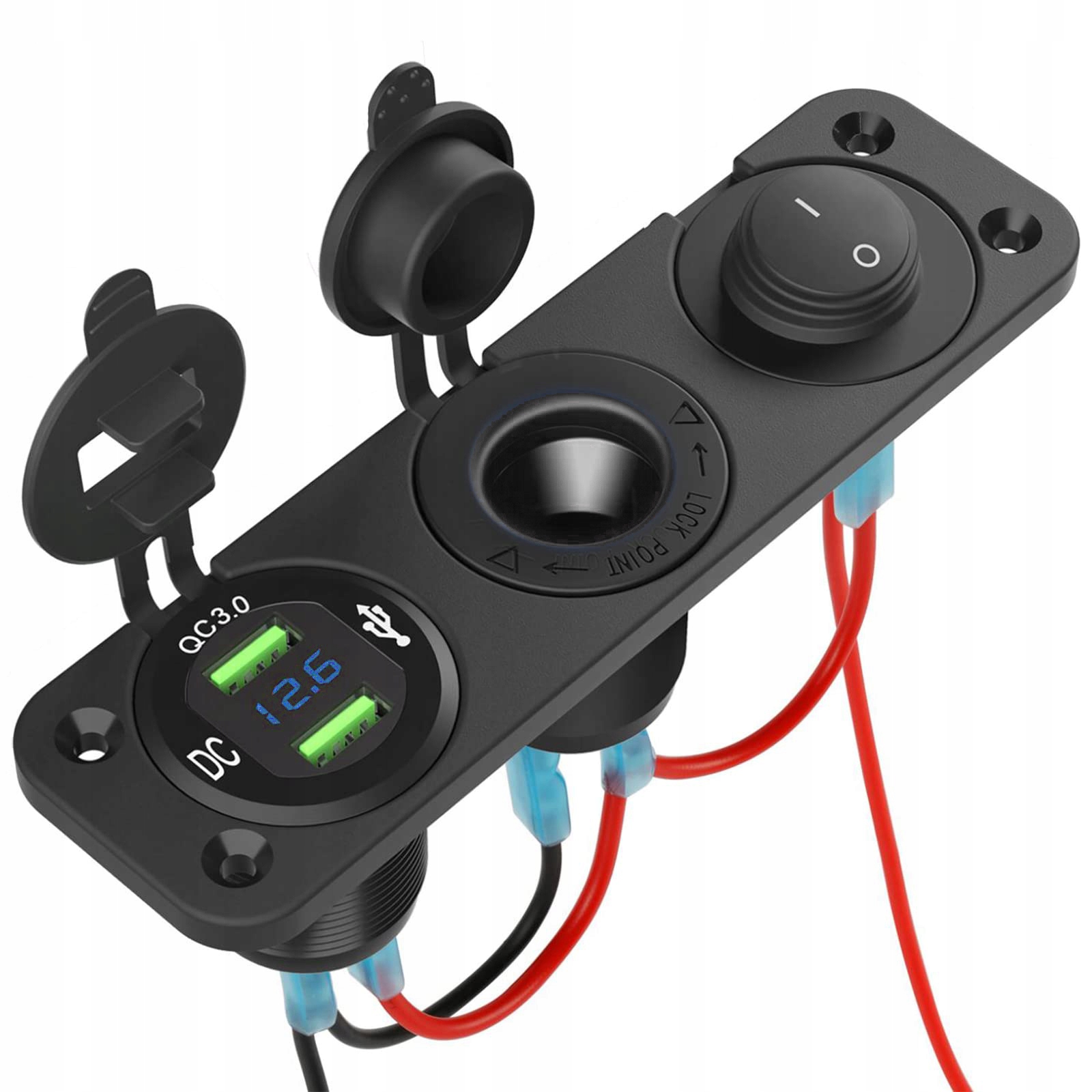 РОЗЕТКА ПРИКУРЮВАЧА 12V 2xUSB АВТОМОБІЛЬНИЙ ВОЛЬТМЕТР ПАНЕЛЬ АВТО, СИНЯ
