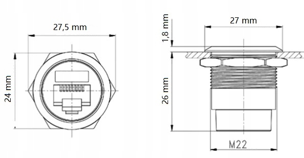 RJ45 Cat 6A разъек с 27 -мм панелью панели экрана h1>