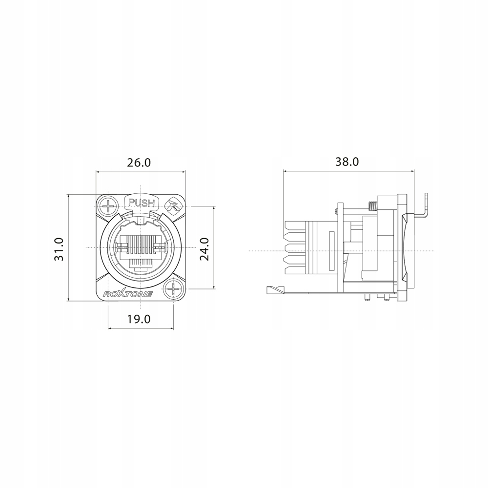 - Расстояние между монтажными отверстиями разъема по горизонтали [мм] 19