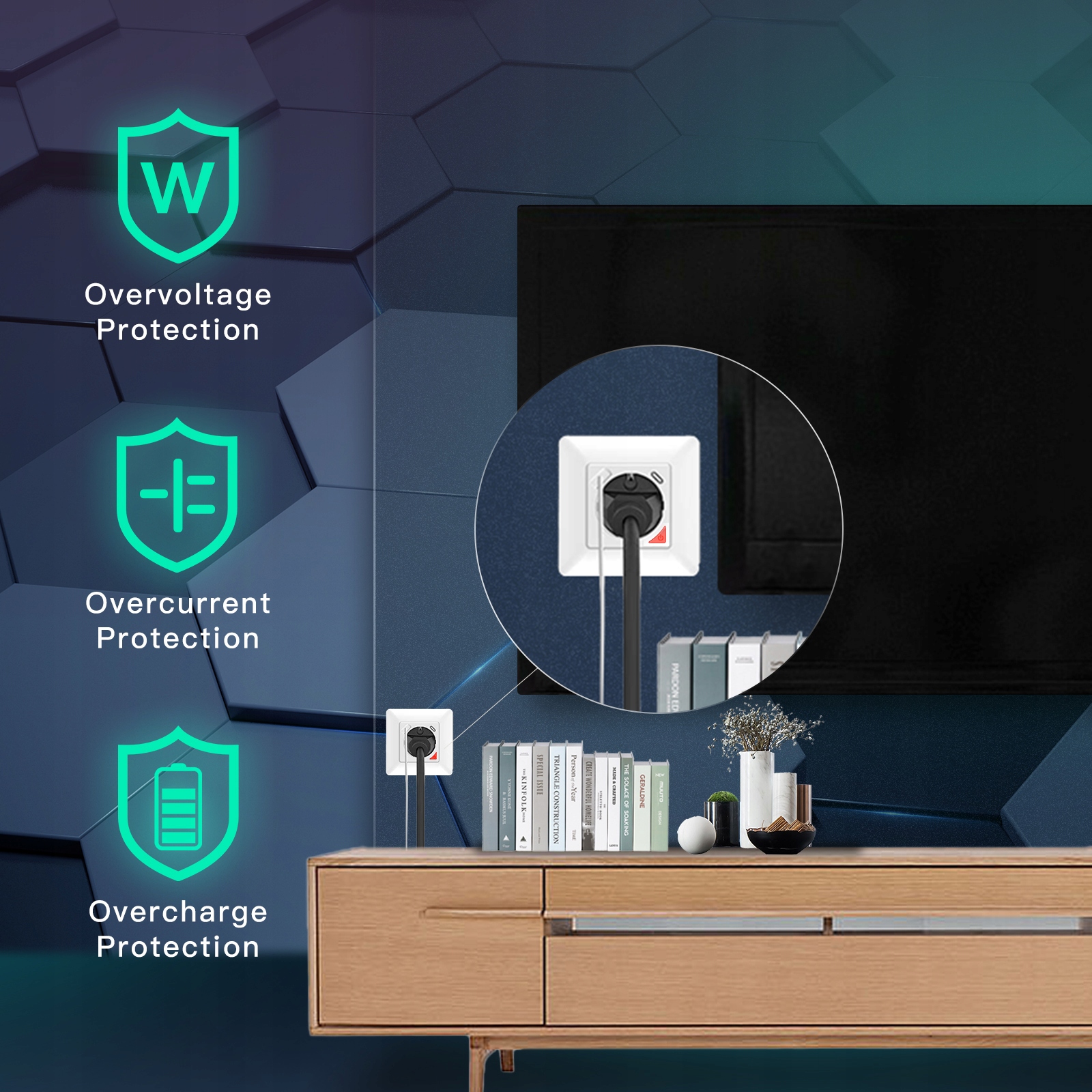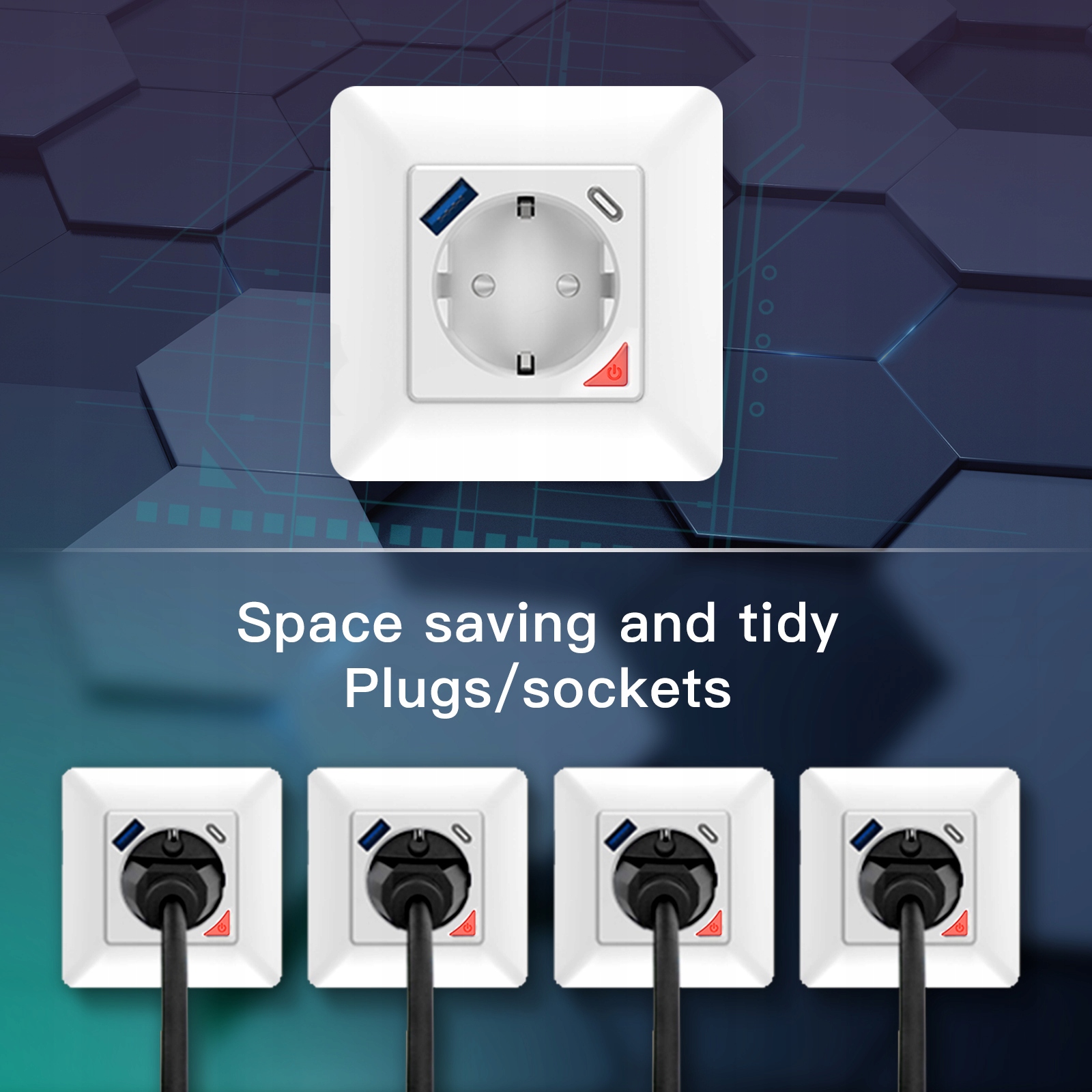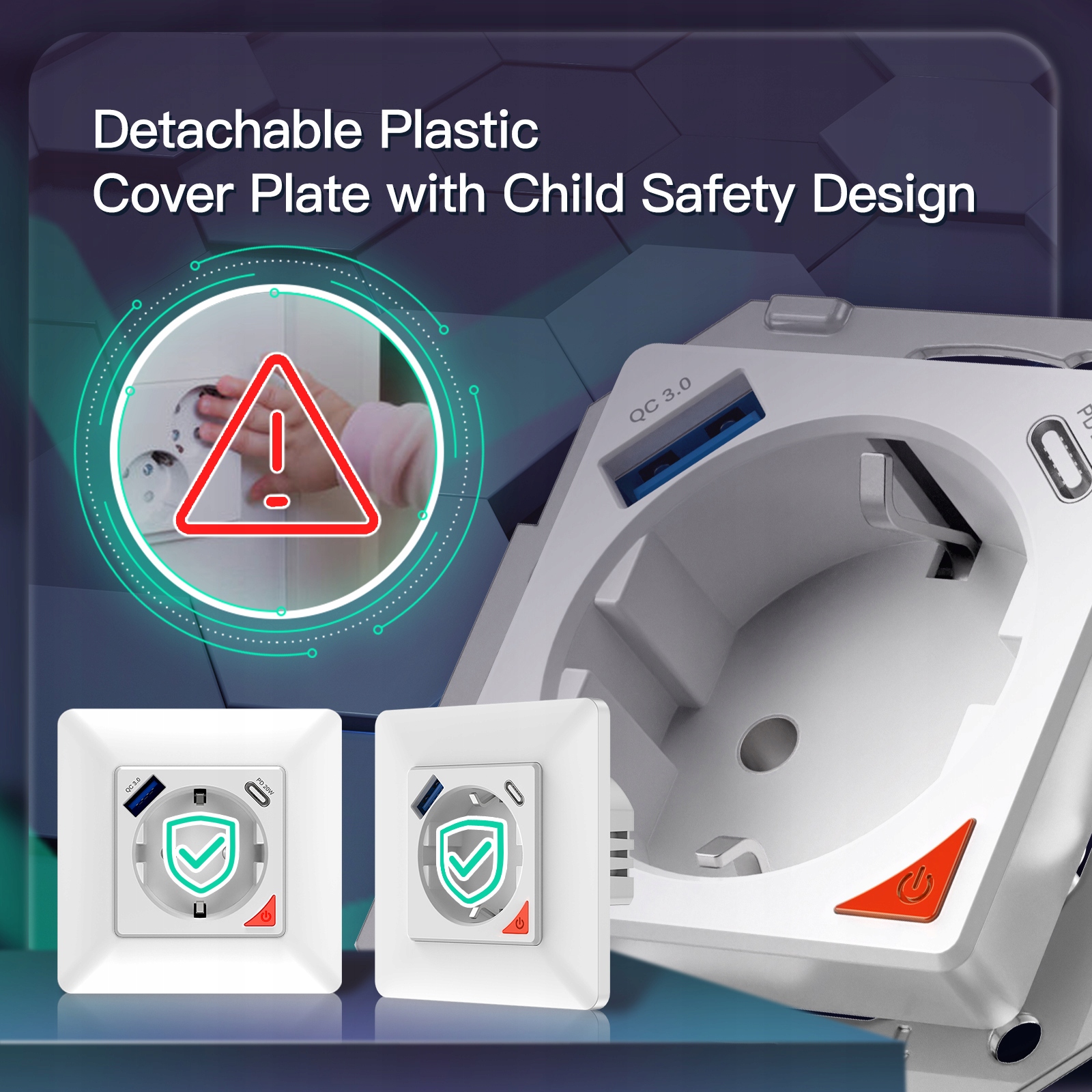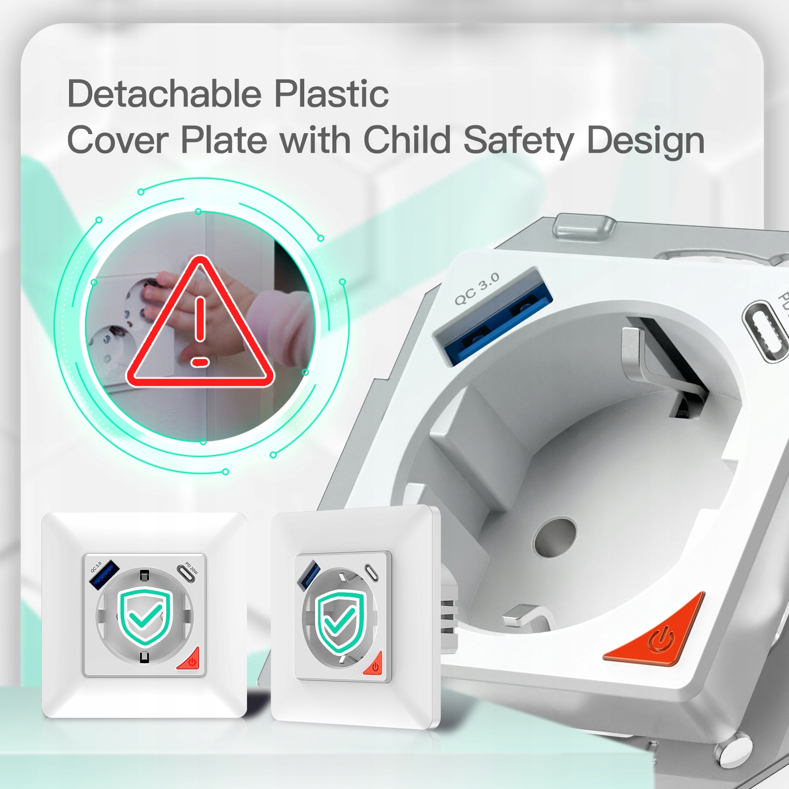 Умная настенная розетка с USB и типом C: Быстрая зарядка с протоколом 3.0+/3.0/2.0 и интерфейсом USB/Type C с поддержкой различных телефонов и электрических устройств, с максимальной выходной мощностью постоянного тока 20 Вт, действует как мощная настенная розетка 3 в 1 в качестве технологии умного дома. (Примечание: два порта для зарядки будут работать непрерывно, когда розетка выключена).