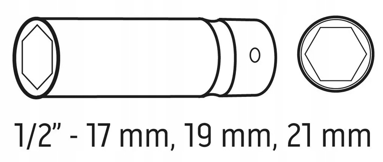 - В комплект входят головки: 17 мм, 19 мм, 21 мм >
