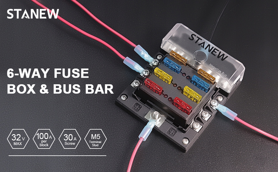 - 1 x 6 цепей с блоком предохранителей отрицательной шины