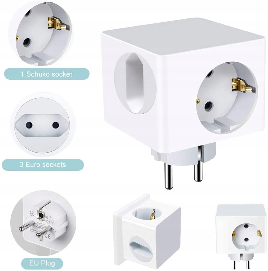 - Решите ваши проблемы: наш куб розеток состоит из 1 круглой вилки (розетка Schuko) и 3 евровилок (евророзетка). Адаптер розетки может расширить розетку в спальне. Может удовлетворить различные требования к зарядке.