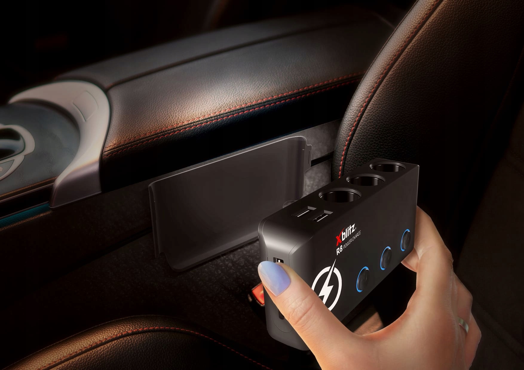 Функциональный R8 POWER CHARGE имеет три гнезда для прикуривателей. Используйте несколько устройств одновременно, не беспокоясь об источнике питания и уровне их заряда.