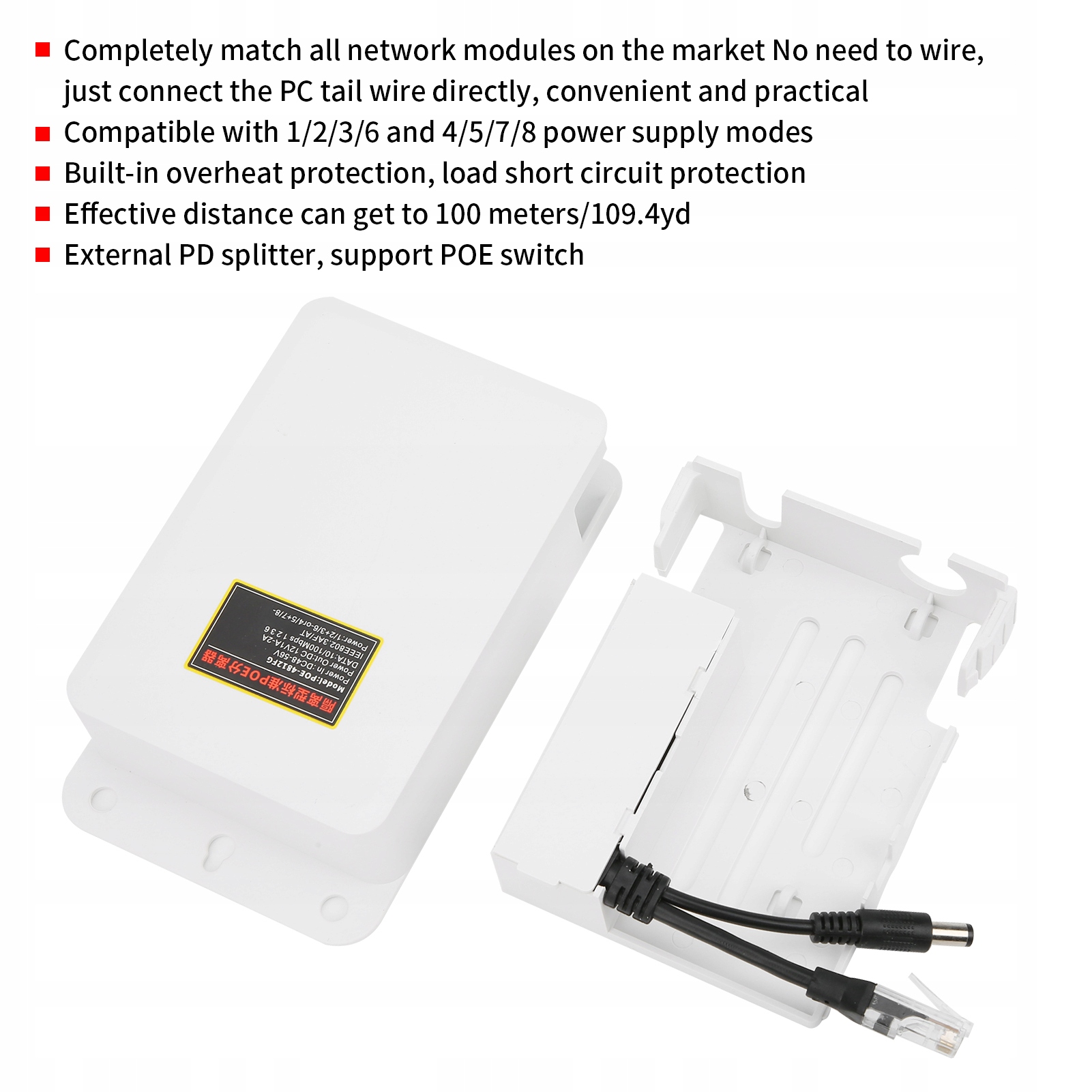 1. Полностью совместим со всеми сетевыми модулями, представленными на рынке, проводка не требуется, просто подключите концевой кабель компьютера напрямую, что удобно и практично. 2. Мощный цифровой шумовой фильтр PSE типа 2 для обнаружения линии, поддерживает EEE.802AF, ограничивает устранение ненормальной работы. 3. Полная система защиты от перенапряжения 8 кВ, электромагнитная совместимость соответствует требованиям стандарта EC61000-4-2/3/4/5/6. 4, широкая конструкция входного напряжения, поддержка 28 В/57 В, встроенная защита от перегрева, защита от короткого замыкания нагрузки. 5, совместим с режимами питания 1/2/3/6 и 4/5/7/8 одновременно, внешний разветвитель PD, поддержка переключателя POE. 6. Встроенный двухканальный мостовой выпрямитель, поддерживает режимы ENDPOINT и MIDSPAN. Протокол 7, 802.3AF, без питания, с молниезащитой, имеет водонепроницаемые свойства (обратите внимание на угол установки). 8. Эффективное расстояние до 100 метров/109,4 ярда, большая выходная мощность 15 Вт, простота обслуживания и простая установка. 9. Простота установки и управления, может автоматически и безопасно смешивать оригинальное оборудование и оборудование POE в сети и может сосуществовать с существующими кабелями Ethernet. 10. Удобная установка, с отверстиями для настенного монтажа и несколькими фиксированными отверстиями, что упрощает инженерную установку. /п>