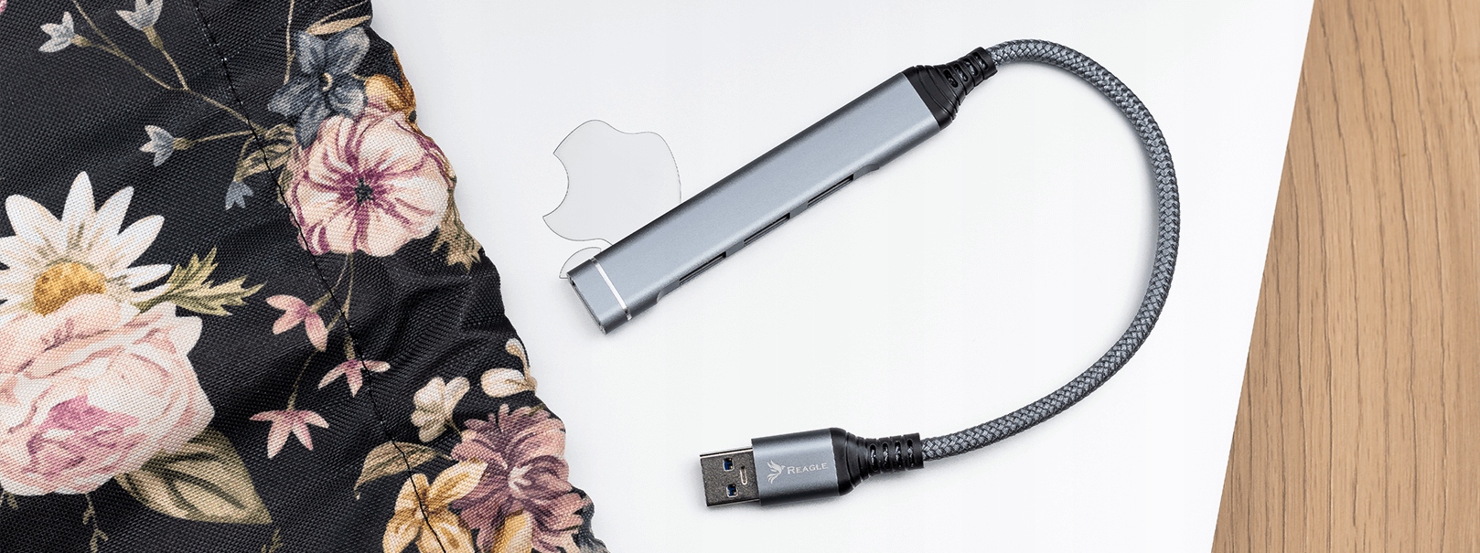 Продукция Reagle отличается отличным качеством изготовления. Хаб имеет алюминиевый корпус и небольшие размеры, поэтому его можно брать с собой куда угодно, не беспокоясь о царапинах. Встроенный кабель окружен оплеткой, защищающей его от механических повреждений. Он не требует дополнительного источника питания, что избавляет вас от необходимости использования дополнительных кабелей.