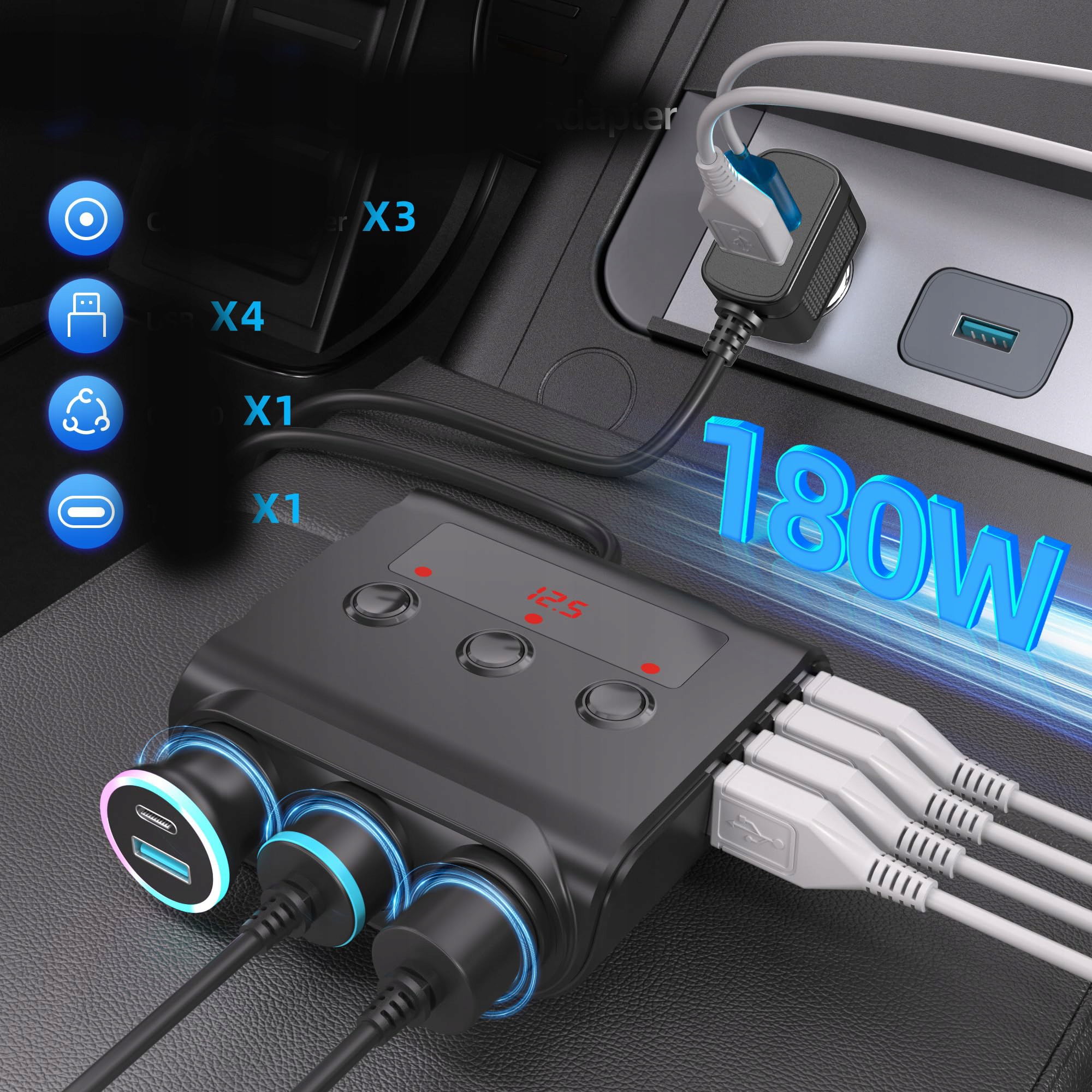 Автомобильный прикуриватель 12/24 В, 3 розетки постоянного тока, 4 различных USB-порта, многопортовый USB-адаптер для автомобильного прикуривателя, состоящий из QC 3.0 (18 Вт) + 1*TYPE C.