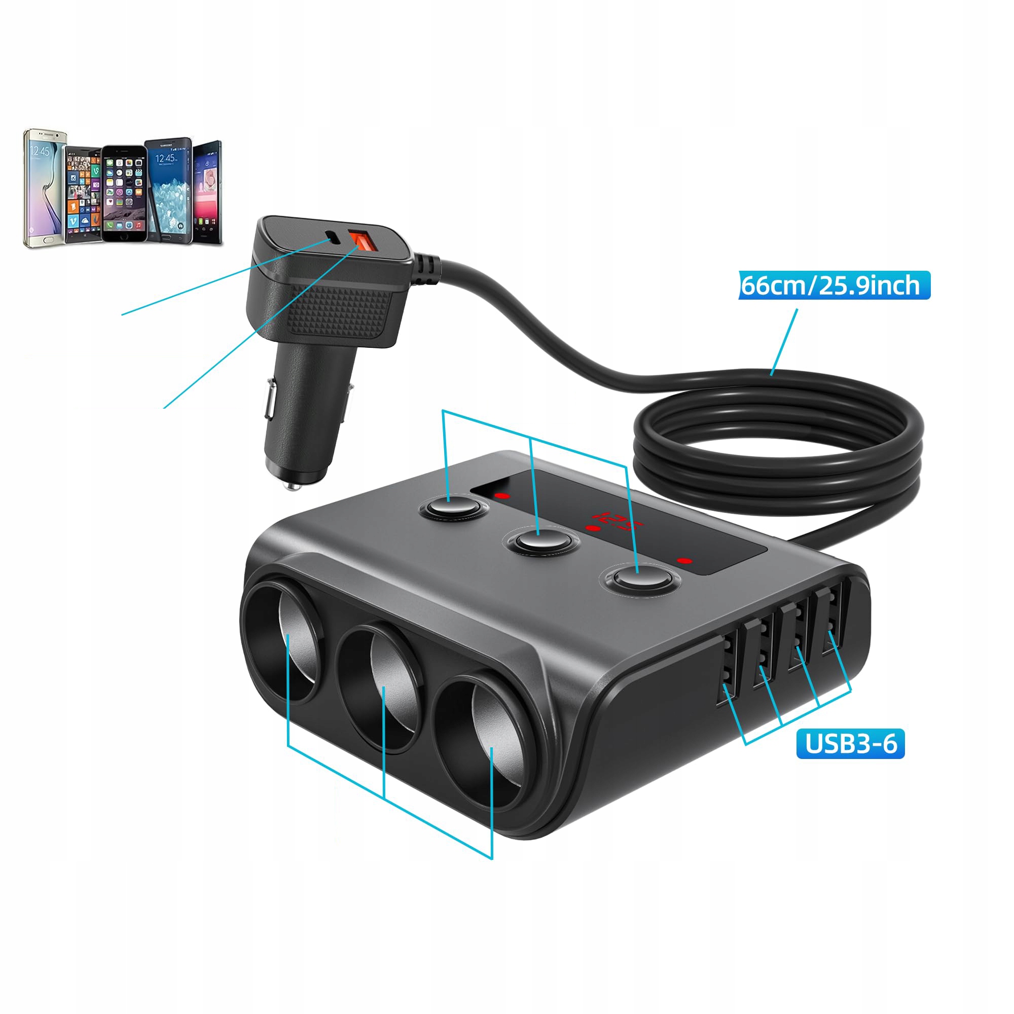 Автомобильный USB-разъем прикуривателя станет идеальным спутником вашего автомобиля. У друзей и родственников есть розетка, где они могут заряжать свои устройства, не споря о том, кто будет заряжать их устройства. Устройство оснащено кабелем длиной 66 см, поэтому его можно заряжать и на заднем сиденье.