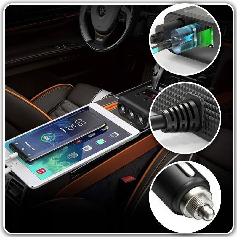 АВТОМОБІЛЬНИЙ РОЗПОДІЛЬНИК ЗАРЯДНИЙ ПРИСТРІЙ 12V-24V 4xUSB