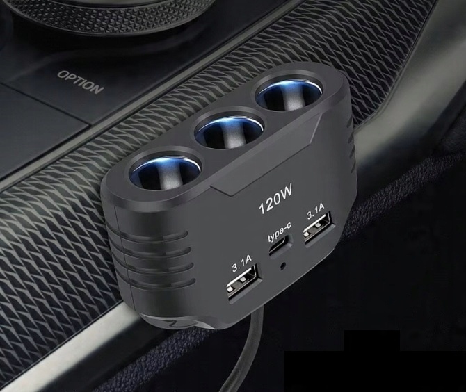 Разветвитель на 3 гнезда прикуривателя АВТОМОБИЛЬНОЕ ЗАРЯДНОЕ УСТРОЙСТВО USB-C USB QC 120 Вт