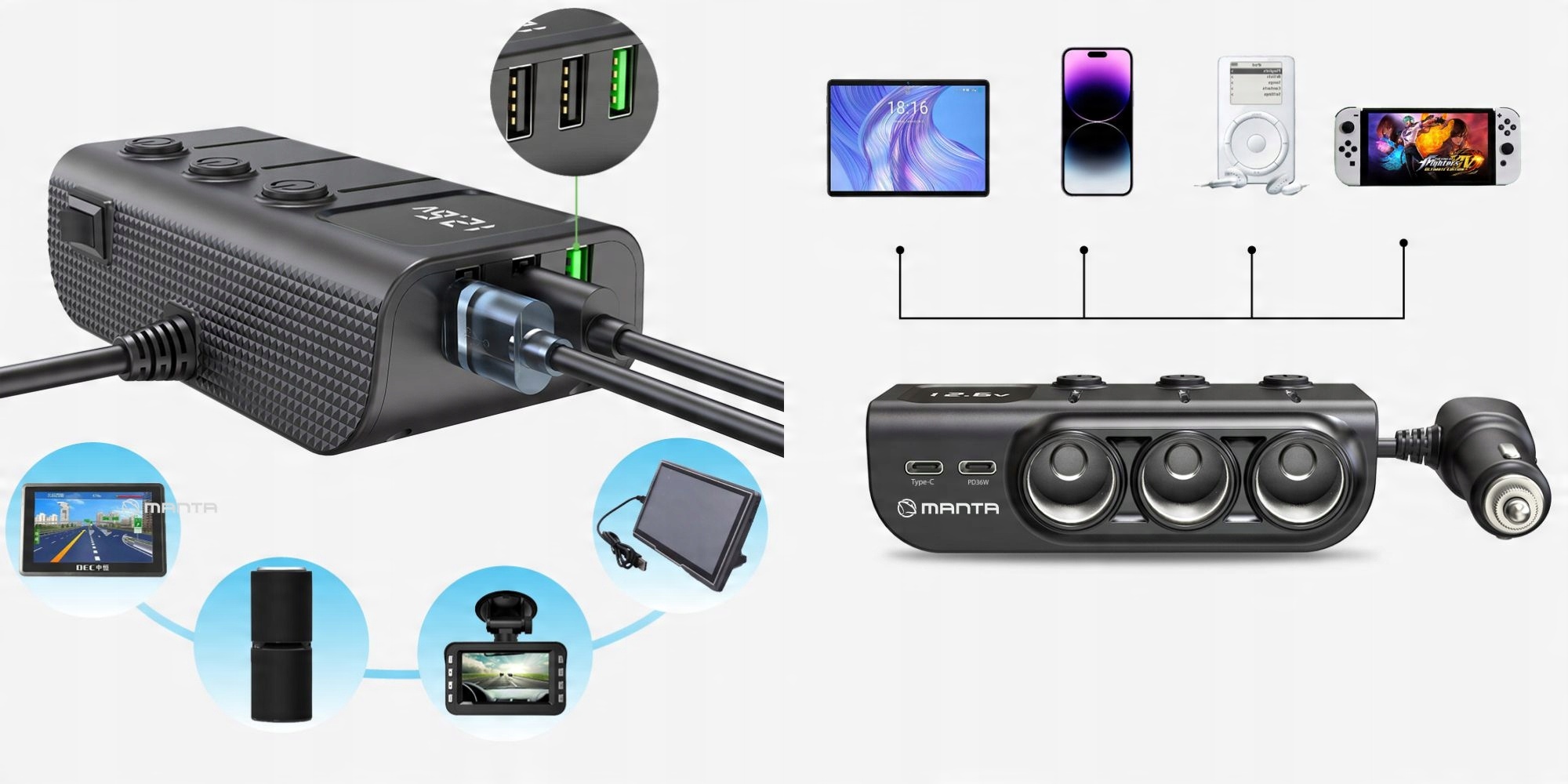 Разветвитель прикуривателя Manta Cari PRO — это универсальное устройство, сочетающее в себе практичность, стиль и эффективность. Благодаря этому разветвителю вы сможете разделить одну розетку прикуривателя на три независимых розетки, с отдельными выключателями и эффективной подсветкой. Это особенно полезно, когда во время путешествия вам необходимо подключить более одного устройства, например, зарядное устройство для мобильного телефона и GPS-навигатор одновременно.