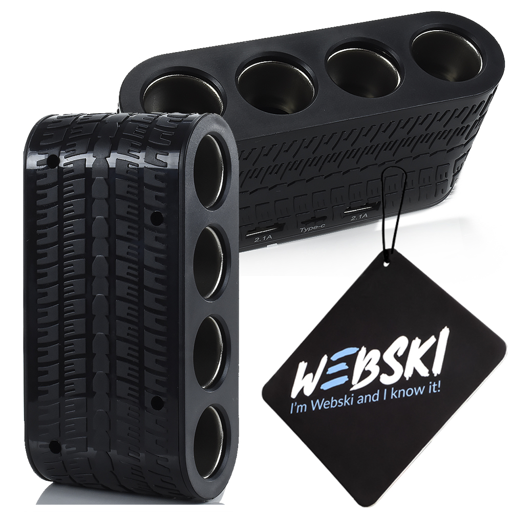 🚗 Разветвитель прикуривателя WEBSKI® Quad с двумя портами USB 2.1A + 1xUSB-C