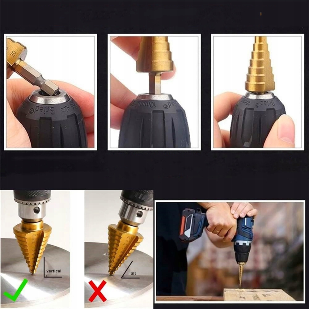 ⏩ Поэтапная конструкция – Позволяет сверлить отверстия разного диаметра одним инструментом.