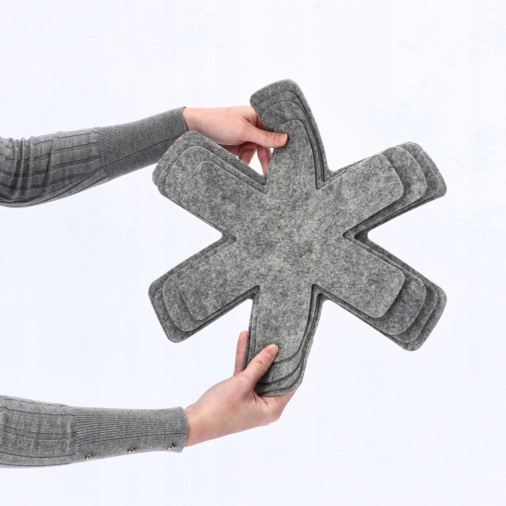 Набор разделителей позволяет хранить кастрюли, не беспокоясь о царапинах и повреждениях. Что вам нужно сделать? Просто вставьте проставки между сковородками, которые защитят их от вмятин, неприглядных царапин и механических повреждений. Благодаря этому вы сэкономите место в домашнем гардеробе и надежно сохраните аксессуары, необходимые для приготовления сочных блюд.